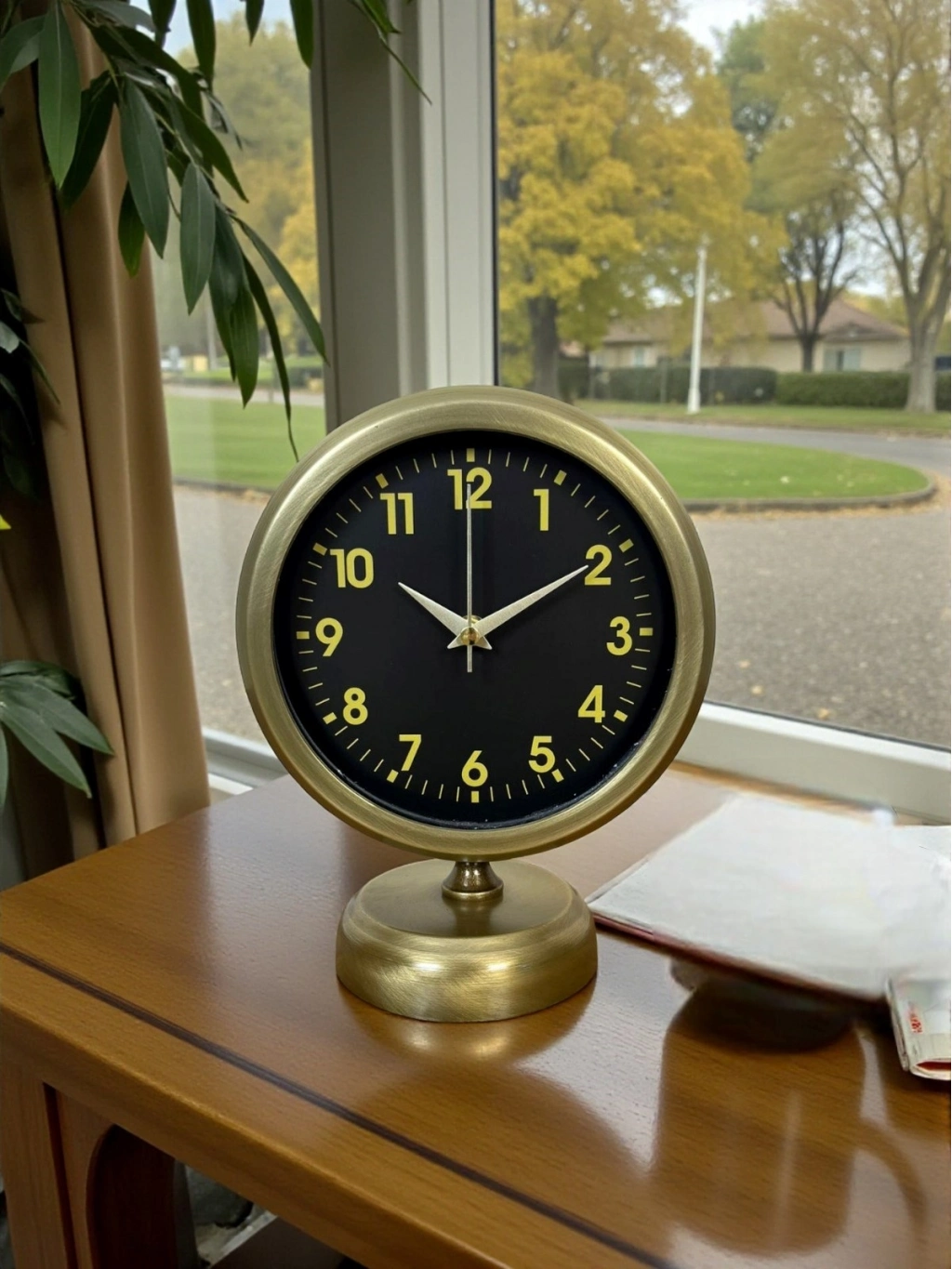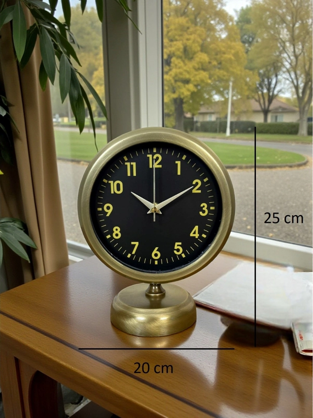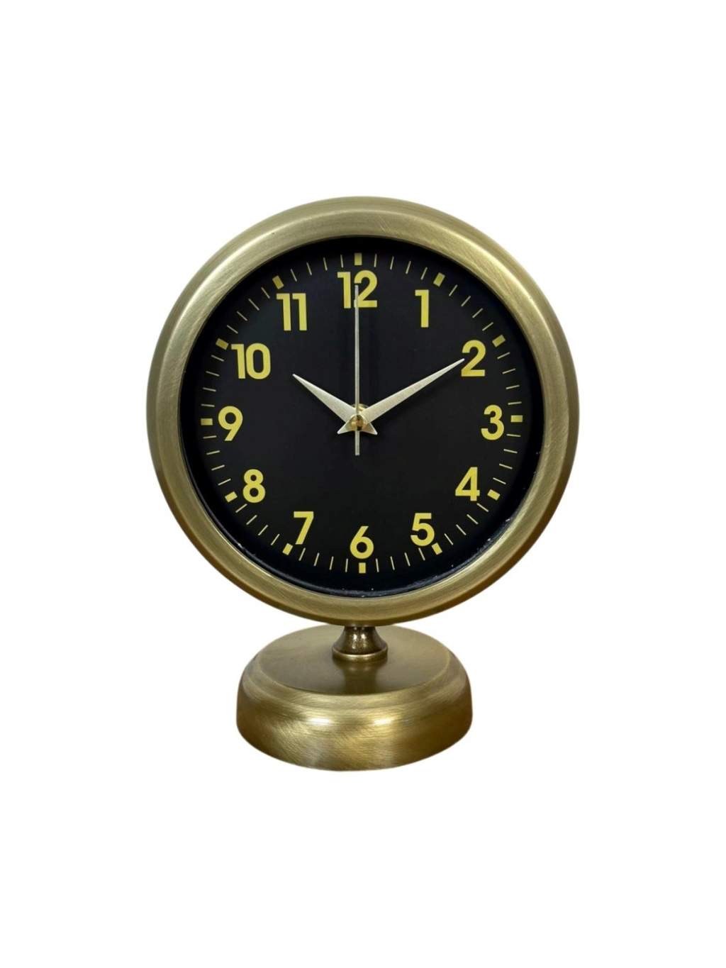 Klasik çizgileri modern detaylarla birleştiren bu eskitme gold masa saati, bulunduğu ortama sofistike bir hava katar. Siyah zemin üzerinde yer alan gold rakamlarıyla dikkat çeken tasarımı; salon, çalışma odası, ofis, konsol üstü ve vitrinler için kusursuz bir tamamlayıcıdır. 25 x 20 cm ölçüsü sayesinde hem yer kaplamaz hem de dekorasyonda güçlü bir duruş sergiler.