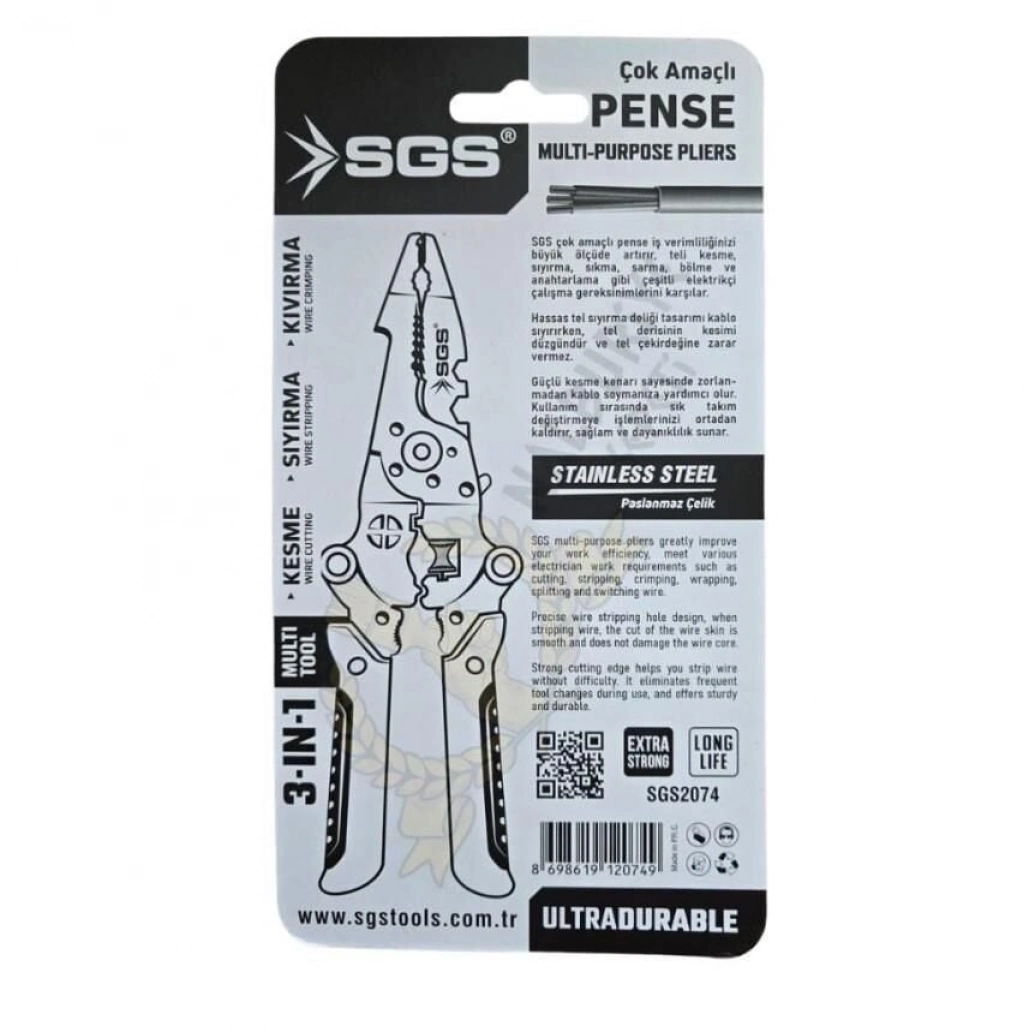 ® Sgs 2074 Çok Amaçlı Elektrikçi Pense Seti