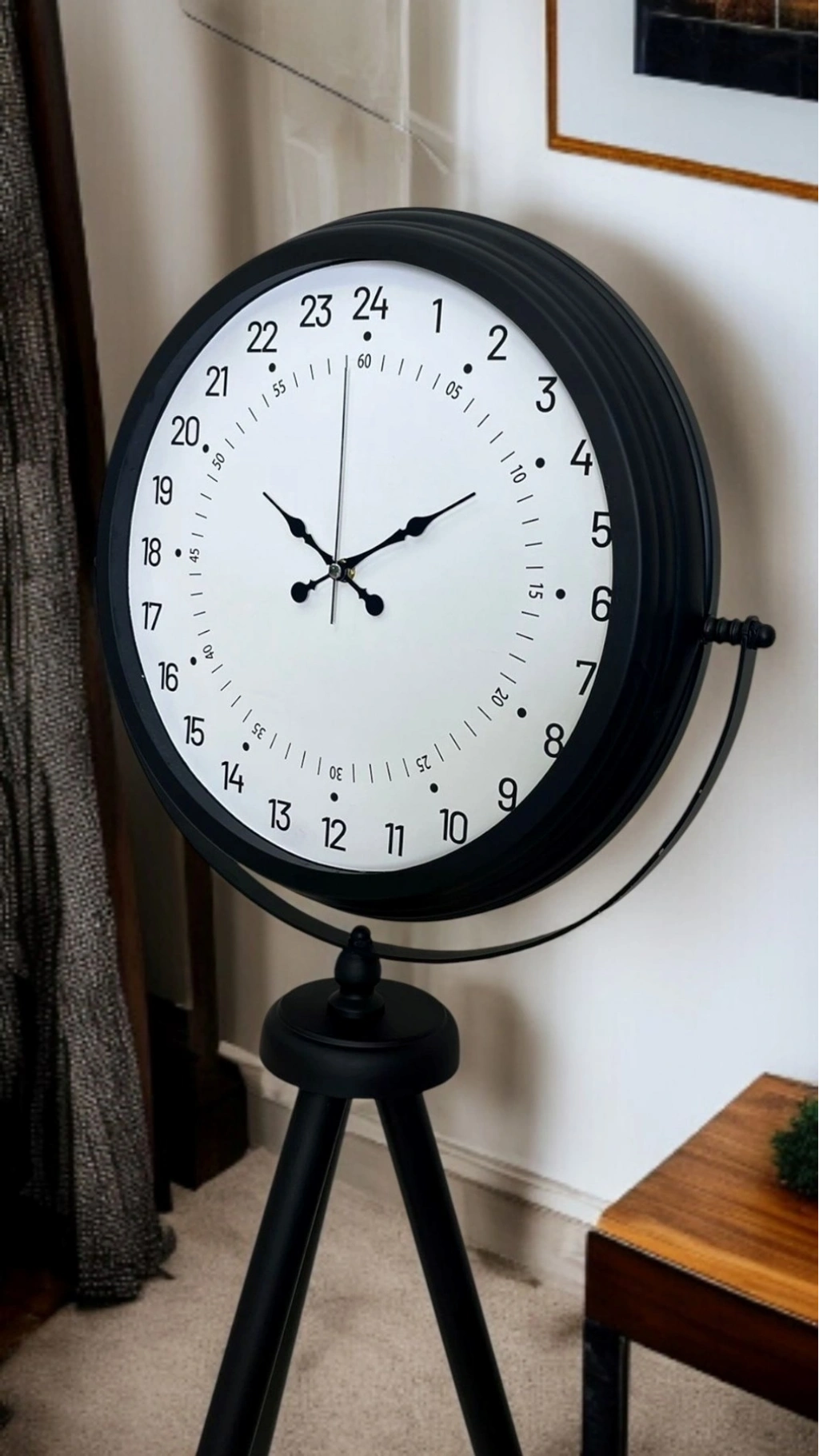 ® Siyah 24 Saat Göstergeli Özel Tasarım Tripod Ayaklı Saat