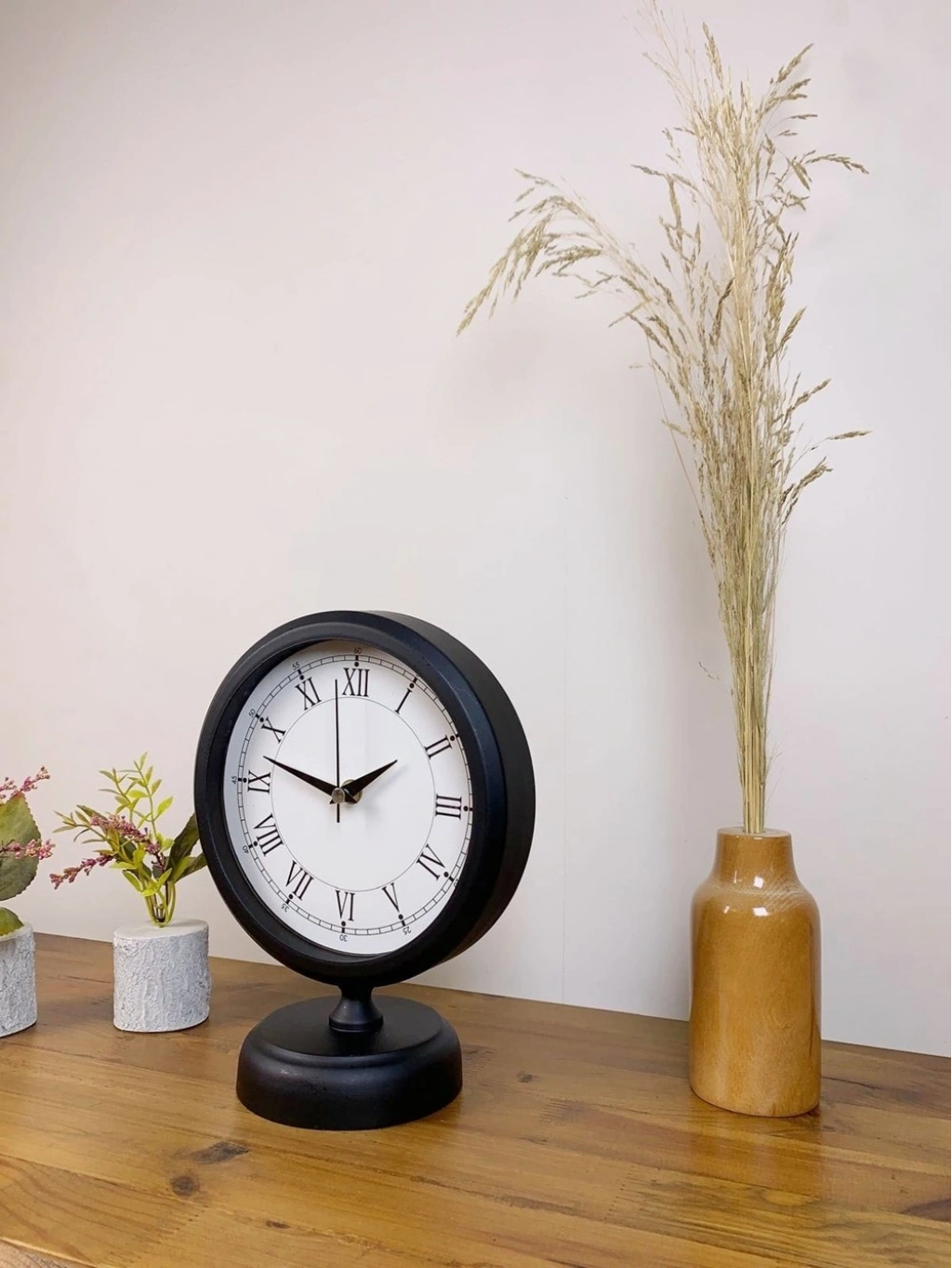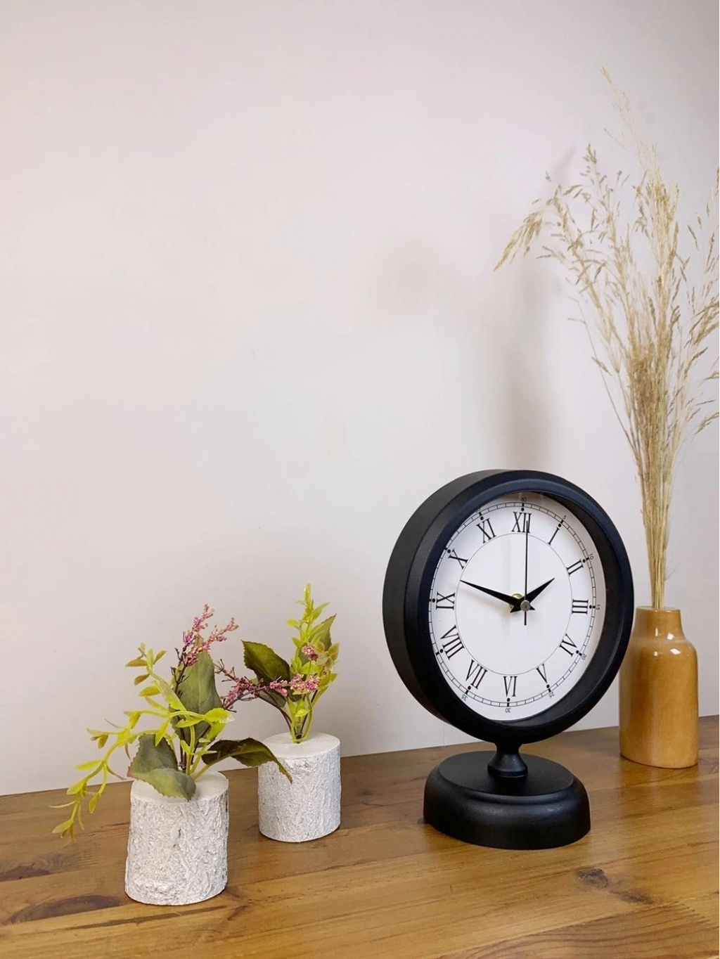 Şık ve modern tasarımıyla dikkat çeken Siyah masa saatimiz, sessiz akar saniye mekanizmasıyla konforlu bir kullanım sunar. Gerçek cam koruma paneli sayesinde uzun ömürlü ve dayanıklıdır. Estetik görünümüyle hem ev hem de iş yerleri için ideal bir dekoratif üründür.