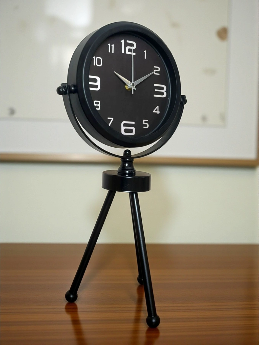 45 x 25 cm ölçülerindeki bu modern siyah üç ayaklı masa saati, minimal tasarımı ve güçlü duruşuyla her ortama şıklık katar. Gerçek cam korumalı kadranı sayesinde net görüntü ve uzun ömürlü kullanım sağlar. Tamamen metal gövdesi ve tripod ayak yapısıyla sağlam, dekoratif ve premium bir görünüm sunar. Sessiz akar saniye mekanizmasıyla ev, ofis ve çalışma alanlarında rahatsızlık vermeden kullanılabilir.