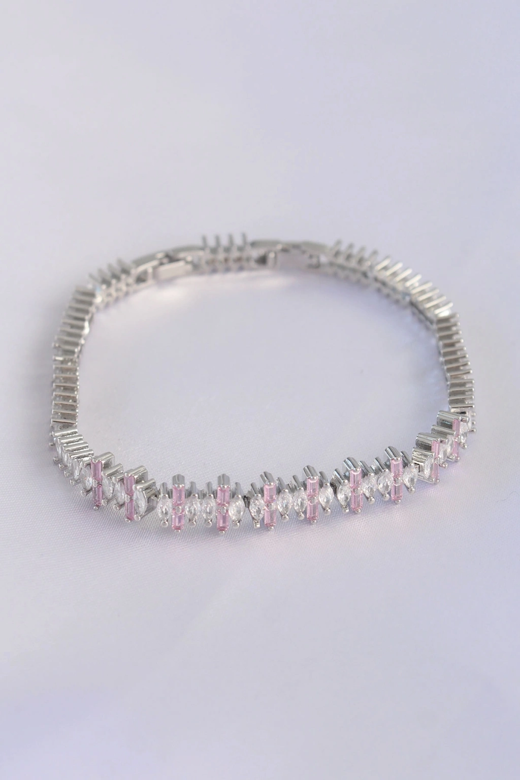 ® Vip Seri Pirinç Pembe Zirkon Taşlı Gümüş Renk Baget Model Bileklik