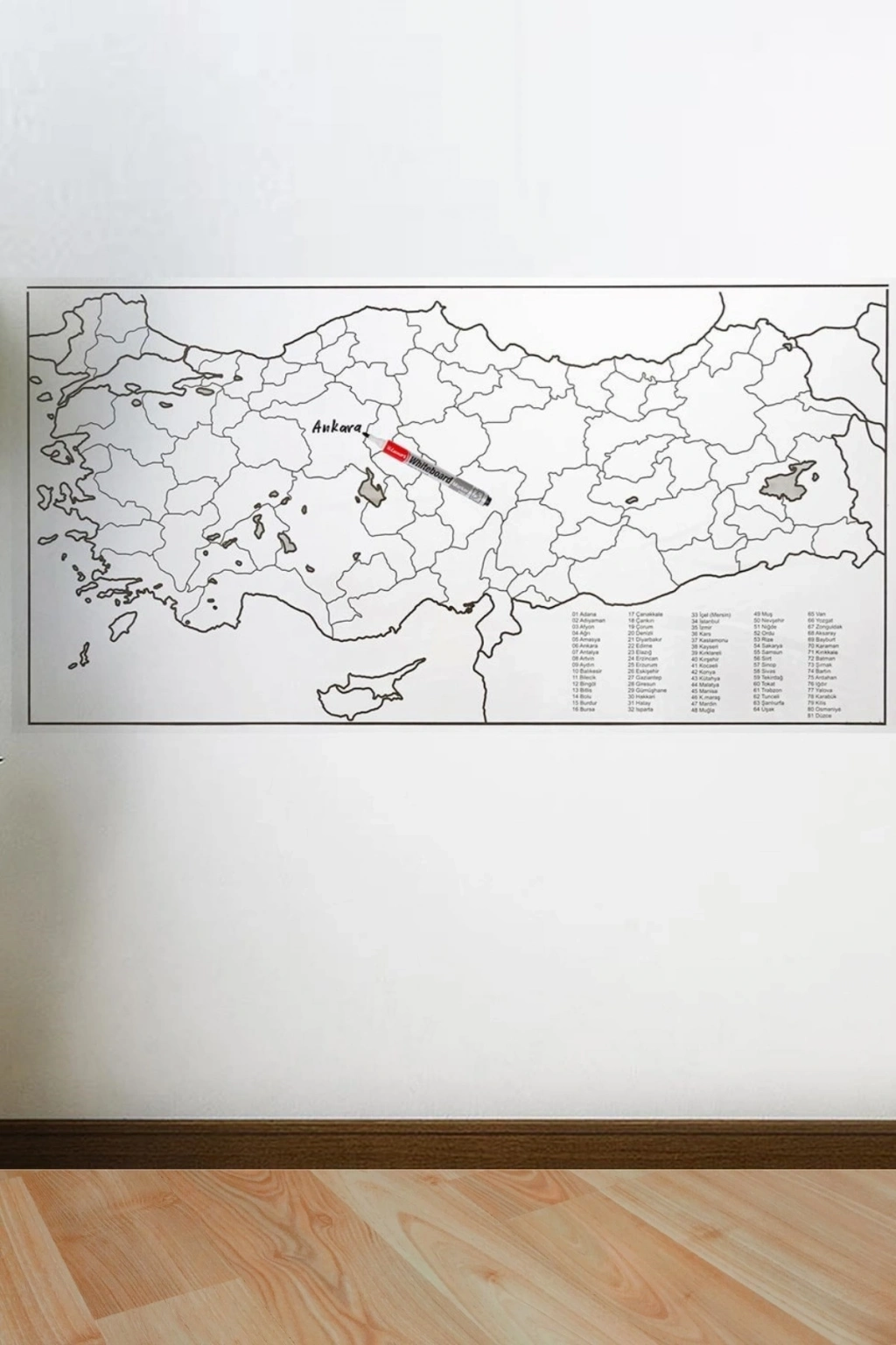 110 x 56 cm Türkiye Haritası Manyetik Duvar Stickerı üzerine Yazı yazılabilir, silinebilir