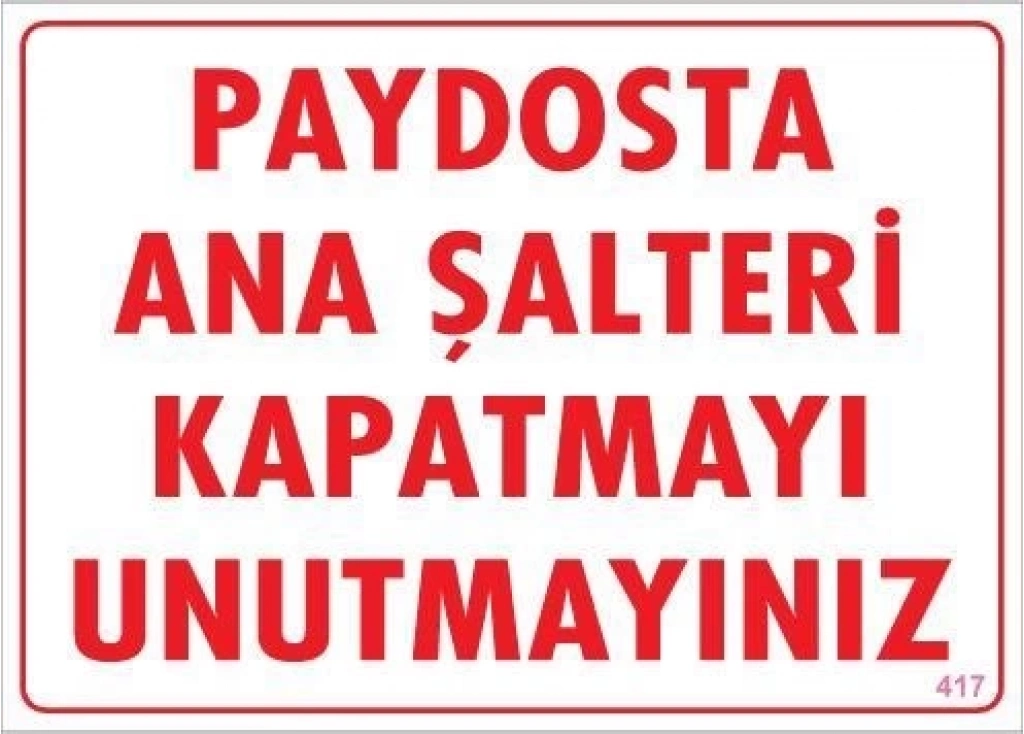 ® Şalteri Kapat Uyarı Levhası 25x35 KOD:417