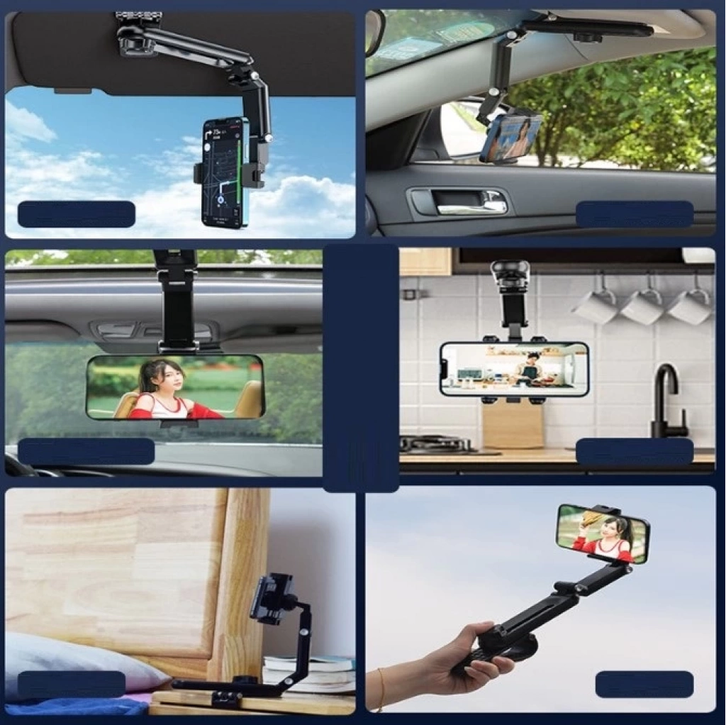 1080° DÖNEBİLEN ÇOK FONKSİYONLU TELEFON TUTUCUÜrün ÖzellikleriCihazınızı her açıdan mükemmel şekilde konumlandırmanızı sağlayan bu telefon tutucu, yatay ve dikey eksende 360° dönebilme özelliğiyle toplamda 1080° hareket kabiliyeti sunar. Navigasyon kullanımı, video izleme veya görüntülü görüşme gibi farklı kullanım senaryolarında her zaman ideal görüş açısını elde edebilirsiniz. Güneşliğe, dikiz aynasına ya da ön panele kolayca monte edilebilen yapısı sayesinde sürüş sırasında navigasyonu takip etme, müzik değiştirme veya arka koltuk yolcularının film izlemesi gibi birçok işlevi destekler. Evde ise masaya, yatağın kenarına ya da mutfak tezgahına klipslenerek tarifleri takip etmek veya görüntülü arama yapmak için uygundur. Kaymaz silikon pedleri ve güçlü sıkıştırma mekanizması, telefonu sabit ve güvenli şekilde tutarak engebeli yollarda bile kaymayı engeller. Genişleyebilir kelepçeleri sayesinde çoğu akıllı telefon modeliyle uyumludur. ABS malzemeden üretilmiş olup darbelere karşı dayanıklıdır ve uzun ömürlüdür. Katlanabilir yapısı sayesinde kolay taşınabilir ve aletsiz montaj ile saniyeler içinde kurulabilir.Paket İçeriği1 Adet 1080° Dönebilen Çok Fonksiyonlu Telefon Tutucu