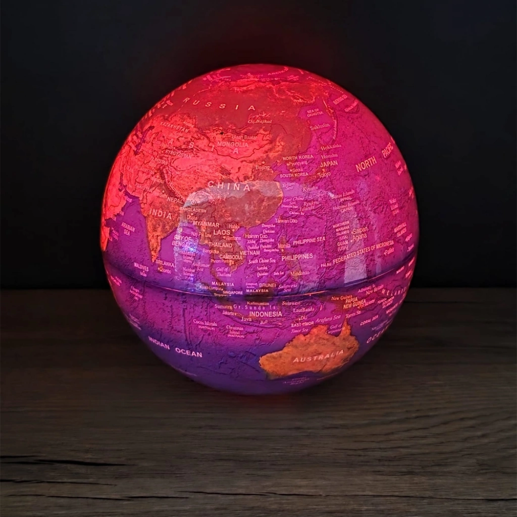 360 DERECE DÖNEN LED IŞIKLI MAVİ DÜNYA KÜRESİ Ürün ÖzellikleriKlasik coğrafya merakını teknolojik bir eğlenceyle buluşturun! LED Işıklı Mavi Dünya Küresi, sadece bir harita değil, aynı zamanda masanızın enerjisini değiştirecek interaktif bir dekorasyon objesidir. 14 cm çapındaki kompakt ve şık tasarımı, yüksek kaliteli sert plastik malzemeden üretilmiştir. Ürünün en dikkat çekici özelliği, düz ve sert bir zemine yerleştirildiğinde 360 derece kendi ekseni etrafında dönebilmesidir. Dönüş sırasında aktifleşen renk değiştiren LED ışık sistemi, okyanus mavisini ve kıta detaylarını büyüleyici bir görselliğe kavuşturur. Net baskı kalitesi sayesinde tüm coğrafi detayları kolayca inceleyebilirsiniz. Kablosuz çalışma özgürlüğü sunan pilli mekanizmasıyla ofis masanızdan gece lambası olarak kullanacağınız komodininize kadar her yere kolayca taşınabilir. Hem çocuklar için öğretici hem de yetişkinler için dinlendirici ve modern bir hediye arayanlar için benzersiz bir tercihtir.Ürün Teknik ÖzellikleriÖzellikAçıklamaÇap Boyutu14 cmMalzemeYüksek Kaliteli Dayanıklı Sert PlastikDönme Özelliği360 Derece Kendi Ekseni Etrafında DönmeIşık ÖzelliğiRenk Değiştiren LED AydınlatmaDönme Güç Kaynağı1 Adet AA Pil (Pakete dahil değildir)Işık Güç KaynağıCR2032 Pil (Mekanizmaya dahildir)Zemin UyumluluğuDüz ve Sert Zeminlerde Sürtünmesiz DönüşBaskı KalitesiYüksek Çözünürlüklü Coğrafi DetaylarPaket İçeriği1 Adet 360 Derece Dönen Mavi Dünya Küresi