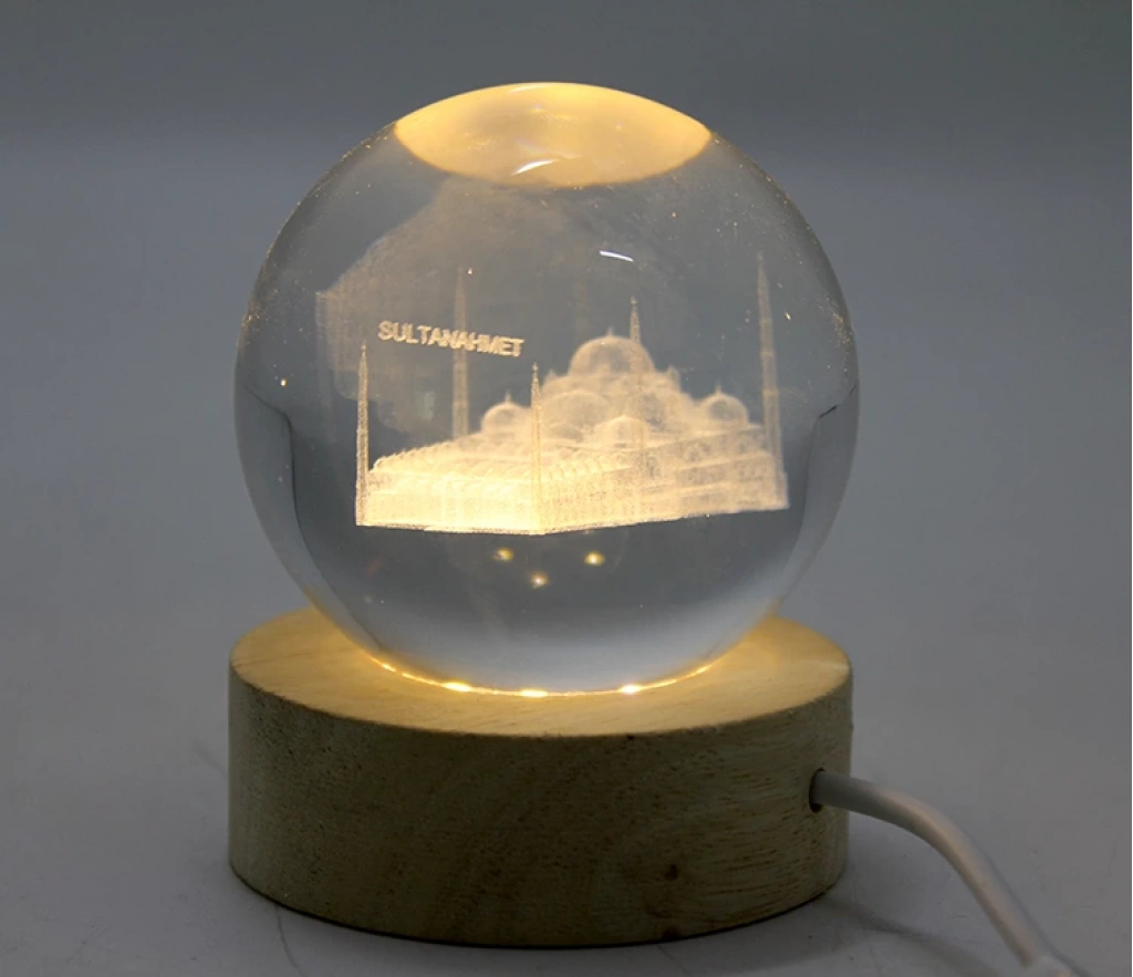 3D İstanbul Temalı Kristal Cam Küre Led Lamba Model 1