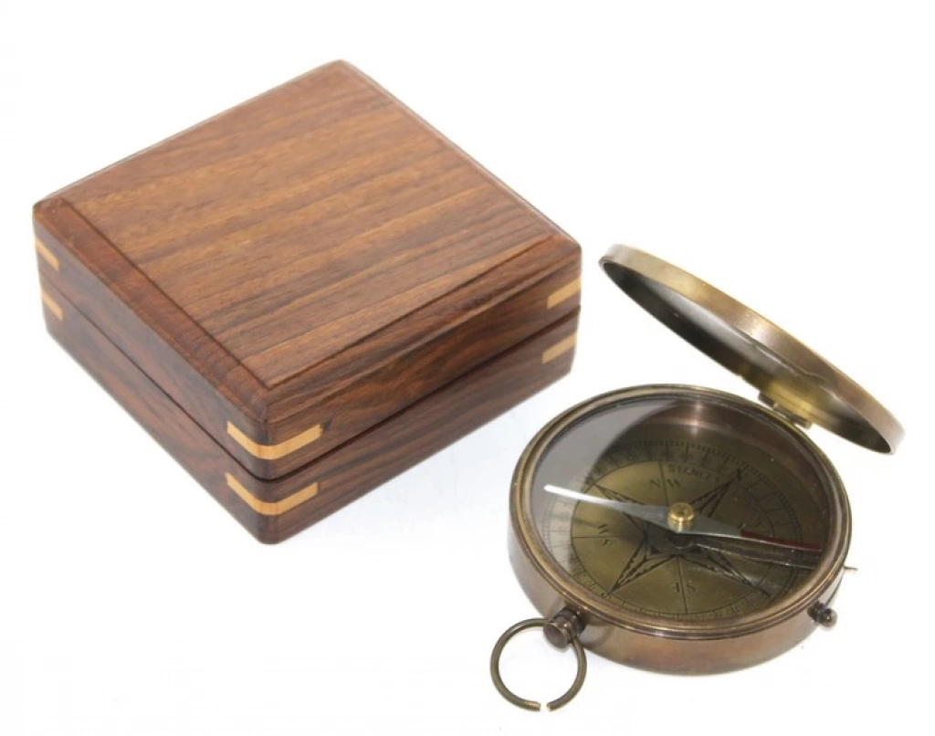 Ahşap Kutulu Pirinç Pusula Model 8