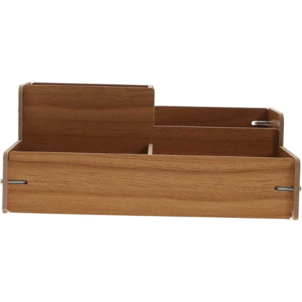 • AHŞAP MASA ÜSTÜ DÜZENLEYİCİ KUTUÜrün ÖzellikleriAhşap masa üstü düzenleyici kutu, çalışma alanınızı düzenli ve şık hale getirmek için mükemmel bir çözümdür. Doğal ahşap malzemeden üretilmiş olup sağlam ve dayanıklı bir yapıya sahiptir. Kalem, makas, fırça, cetvel ve diğer ofis ya da makyaj malzemelerinizi düzenli bir şekilde saklamanıza yardımcı olur. Bölmeli yapısı sayesinde farklı eşyalarınızı kategorilere ayırarak kullanabilirsiniz. Şık ve fonksiyonel tasarımı sayesinde ofis masalarında, çalışma odaların