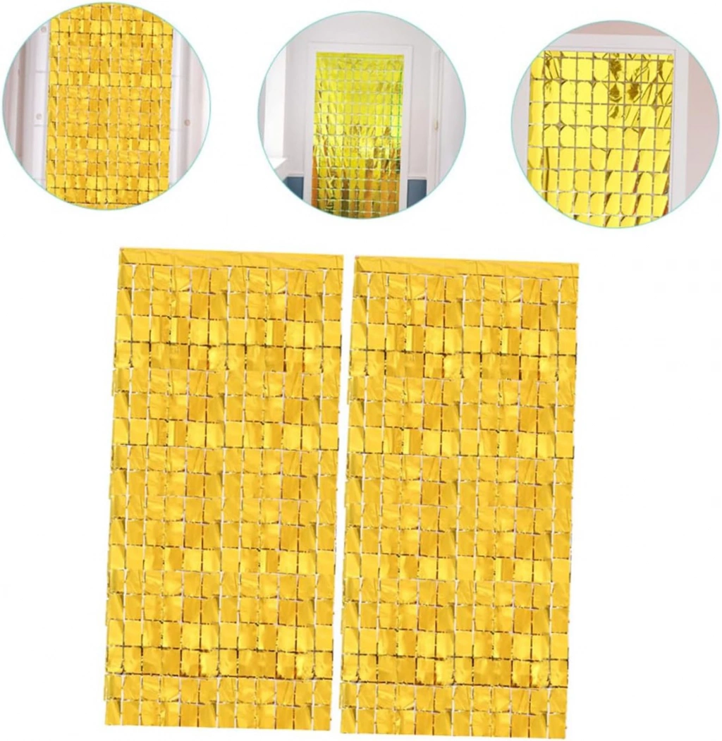 ALTIN RENK DİSKO DİKDÖRTGEN KESİM KAPI PERDESİÜrün ÖzellikleriAltın Renk Disko Dikdörtgen Kesim Kapı Perdesi, özel gün ve organizasyon dekorasyonlarında dikkat çekici bir atmosfer oluşturmak için tasarlanmıştır. 1x2 metre ölçüsündeki ideal boyutu sayesinde kapı girişlerinde, sahne arka planlarında ve fotoğraf alanlarında rahatlıkla kullanılabilen disk kapı perdesi, parlak altın rengi ile bulunduğu ortama ışıltılı bir görünüm kazandırır. Düğünler, doğum günü partileri, nişan törenleri ve yılbaşı kutlamaları için tercih edilebilen altın parti perdesi, sahne dekorasyonlarında, fotoğraf çekimlerinde ve video prodüksiyonlarında arka fon olarak kullanılabilir. Mağaza ve vitrin dekorasyonlarında ürünlere dikkat çekmek amacıyla da uygun olan dekoratif kapı perdesi, arkasında bulunan çift taraflı bant sayesinde kolayca asılabilir. İstenilen ölçülerde kesilebilir yapısı ile farklı alanlara uyarlanabilir ve tekrar kullanılabilir özelliği sayesinde uzun süreli kullanım sunar. İthal A kalite malzemeden üretilmiş olup sağlam ve dayanıklı yapısı ile öne çıkar.Ürün Teknik Özellikleri Özellik Açıklama Ürün Adı Altın Renk Disko Dikdörtgen Kesim Kapı Perdesi Boyut 1 x 2 Metre Renk Altın Malzeme İthal A Kalite Montaj Çift Taraflı Bantlı Paket İçeriği1 Adet Altın Renk Disko Dikdörtgen Kesim Kapı Perdesi