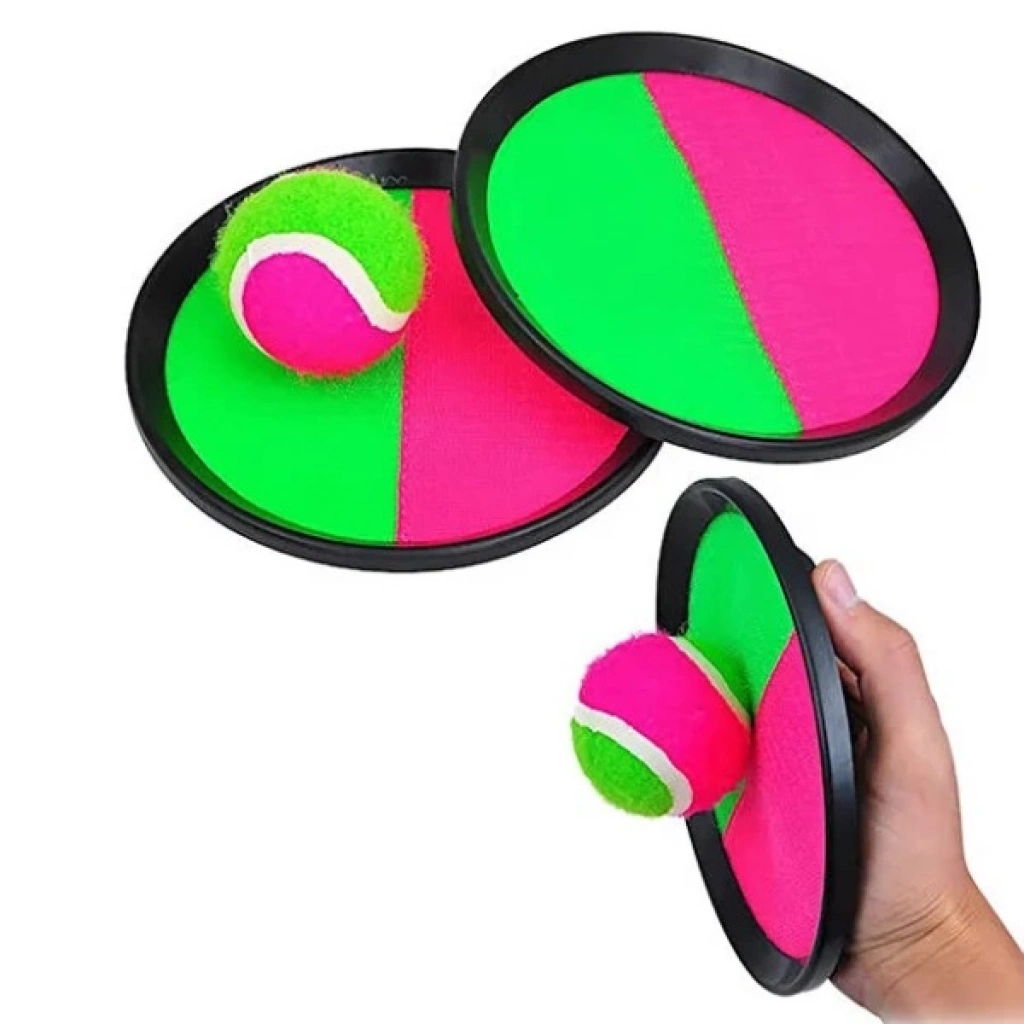 CIRTLI YAPIŞAN TOP OYUNCAK – AT TUT YAKALAÜrün ÖzellikleriCırtlı Yapışan Top Oyuncak Seti, hem çocuklar hem de yetişkinler için eğlenceli ve hareket dolu bir oyun deneyimi sunar. Dayanıklı cırt yüzeyi sayesinde top aparata kolayca yapışır ve oyun boyunca yüksek tutuş performansı sağlar. Açık alanlarda, parkta, sahilde veya bahçede aktif vakit geçirmek için ideal bir tercihtir.El koordinasyonu, refleks gelişimi ve motor becerilerini destekleyen bu set, aile oyunlarında ve çocuk aktivitelerinde keyfi artırır. Hafif yapısı sayesinde kolayca taşınabilir ve her yaş grubuna uygun eğlenceli bir oyundur. 2 kişilik kullanım için tasarlanan set, arkadaşlar ve aile bireyleri arasında rekabetli ve eğlenceli anlar yaratır.Paket İçeriği2 adet cırtlı tutma aparatı1 adet top