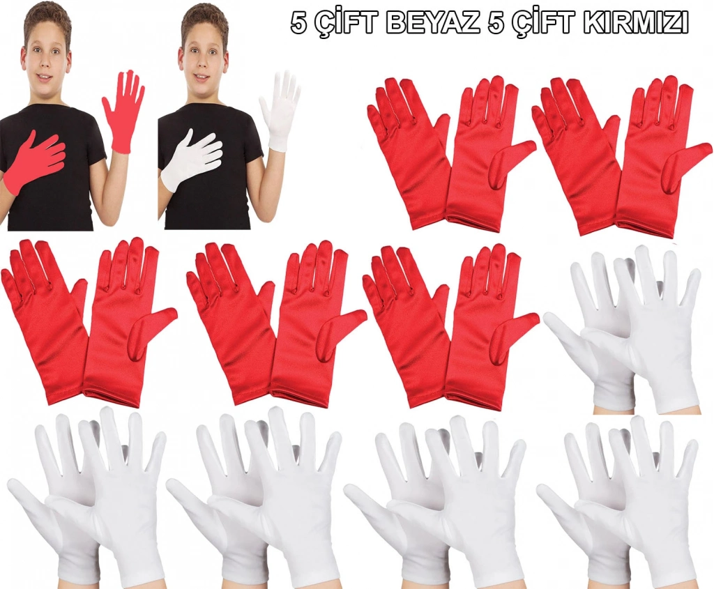 Çocuk Gösteri Eldiven Seti – 5 Çift Beyaz & 5 Çift Kırmızı