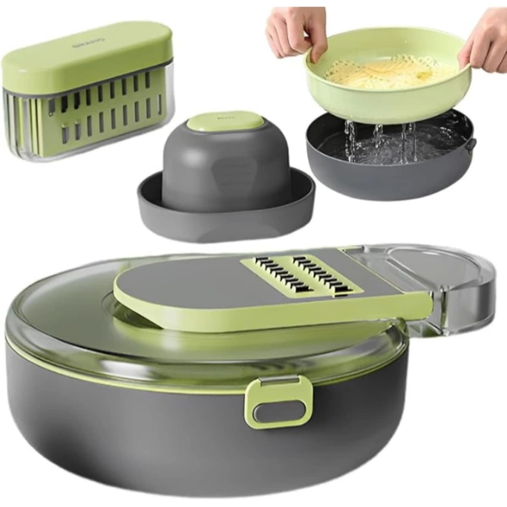 ÇOK FONKSİYONLU RENDE SETİÜrün ÖzellikleriÇok Fonksiyonlu Rende Seti, sebzelerinizi hızlı ve pratik bir şekilde dilimleme, doğrama ve rendelenmesini sağlar. Ürün, mutfakta zaman kazandıran çok fonksiyonlu bir araçtır. Üzerinde farklı fonksiyonlar için kullanılabilecek çeşitli bıçaklar ve rende alanları bulunur.  Sebzeleri dilimlemek, doğramak, rendelemek ve ince ince kesmek için farklı başlıklar ve fonksiyonlar içerir. Sebzeleri hızlıca doğrayıp dilimlemenizi sağlayan bıçakları sayesinde mutfakta işleriniz hızlanır. Sağlam yapısı sayesinde uzun ömürlüdür ve dayanıklı plastik ve metal malzemelerden üretilmiştir. Gıda ile temas eden bölümleri sağlıklı ve güvenli malzemelerden yapılmıştır. Sebzeleri farklı şekillerde doğrayabilir ve kesebilirsiniz. Aparatı ile sebze-meyve kabı olarak ve süzgeç olarak kullanılabilir. Ürün yıkamaya uygun olup, 60°C altındaki sıcaklıklarda yıkanabilir.Bu 9 fonksiyonlu sebze doğrayıcı, yemek hazırlığınızı kolaylaştırırken, aynı zamanda çok yönlü kullanımıyla pratik bir yardımcıdır.Paket İçeriği1 adet Çok Fonksiyonlu Rende Seti