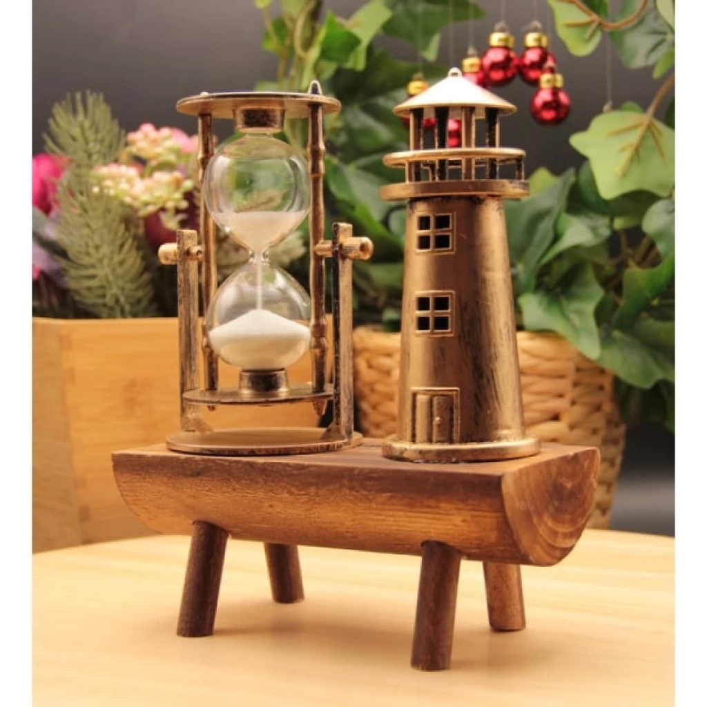 DENİZ FENERİ BİBLOLU KUM SAATİÜrün ÖzellikleriDeniz feneri biblolu kum saati, deniz temalı nostaljik tasarımıyla dikkat çeken dekoratif bir masa süsüdür. Metalik altın renkteki deniz feneri detayı ve şeffaf cam kum saati, ahşap görünümlü platform üzerinde bir araya getirilerek estetik bir bütünlük oluşturur. Üzerindeki “Love” yazısı ürüne romantik bir dokunuş katarken, retro görünümü sayesinde her ortamda şık bir atmosfer yaratır. Ofis, ev veya hediye alternatifi olarak değerlendirilebilir. El işçiliği hissi veren yüzeyi ve zarif detayları ile sergimizluk bir parçadır.Paket İçeriği1 Adet Deniz Feneri Biblolu Kum Saati