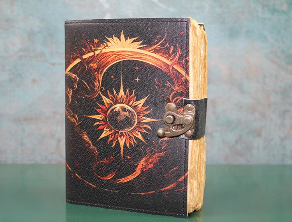 DERİ DEFTER MODEL 4Ürün ÖzellikleriDeri Defter Model 4, güneş ve ay tasarımıyla şıklık ve anlam taşıyan bir defterdir. Çizimli tasarımı, doğanın sembollerini simgelerken, deri kapak estetik bir dokunuş sağlar. 18x13 cm ölçülerindeki boyutu, rahatça yazılabilir geniş bir alan sunar. Hem kişisel kullanım hem de hediye olarak mükemmel bir tercihtir. Bu defter, sanatsal tasarımı ve zarif görünümüyle dikkat çeker.Paket İçeriği1 adet Deri Defter Model 4.