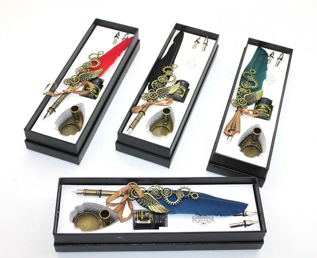 DIVIT HOKKA SETİ MODEL 4Ürün ÖzellikleriDivit Hokka Seti Model 4, koyu renkli ve zarif işleme detaylarıyla dikkat çeken nostaljik bir yazı setidir. Şık tasarımı, geleneksel yazı sanatlarına ilgi duyanlar için estetik bir deneyim sunar. Tüy divit, yazı yazmayı keyifli hale getirirken, hokka, mürekkebinizi düzenli bir şekilde saklamanızı sağlar. Zarif işleme detayları, bu seti hem dekoratif hem de sergimizluk bir parça haline getirir. Ev ve ofis dekorasyonunda kullanabileceğiniz bu set, aynı zamanda özel bir hediye seçeneği olarak öne çıkar.Not: Ürünler farklı renklerde mevcuttur ve var olan renk gönderim yapılmaktadır. Paket İçeriği1 adet Divit Hokka Seti Model 4