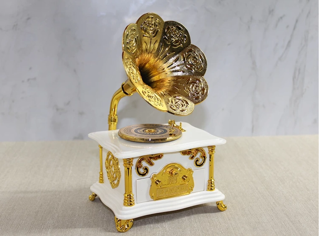 GRAMOFON MÜZİK KUTUSU BEYAZÜrün ÖzellikleriGramofon Müzik Kutusu Beyaz, klasik ve şık tasarımıyla dikkat çeken bir dekoratif müzik kutusudur. Beyaz gövdesi ve altın detaylarıyla zarif bir görünüm sunar. Mekanik kurma mekanizması ile çalışarak nostaljik bir melodi çalar. Ev ve ofis dekorasyonu için uygun olup, hediye olarak da tercih edilebilir.Paket İçeriği1 Adet Gramofon Müzik Kutusu