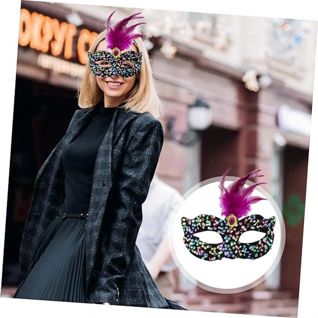 Siyah Kadife Rengarenk Payetli Pembe Parti Maskesi