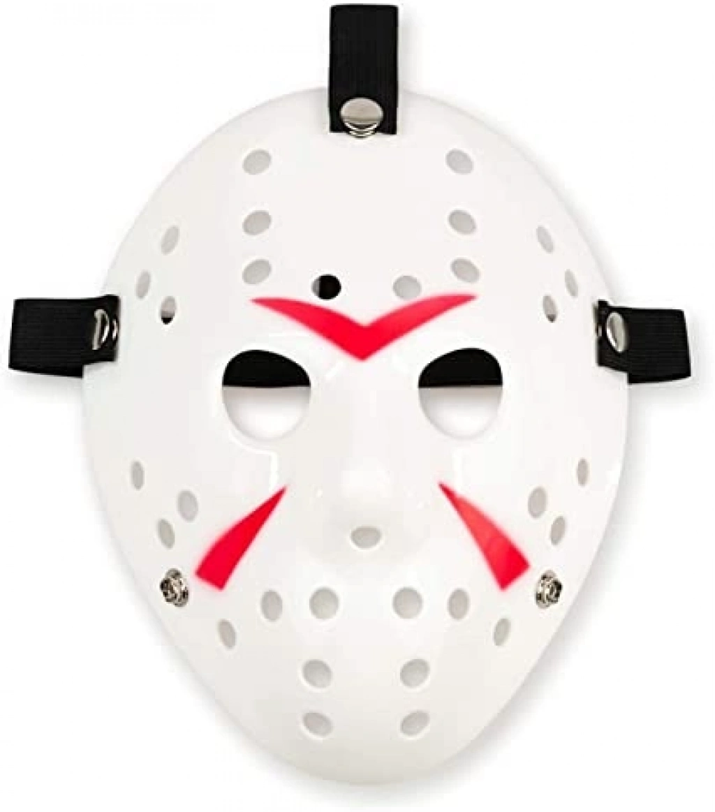 BEYAZ KIRMIZI ÇİZGİLİ TAM YÜZ HOKEY MASKESİÜrün ÖzellikleriBeyaz renk, kırmızı çizgili tasarım.Tam yüz maskesi, yüzü tamamen kaplar.Korkutucu bir görünüm sunar, Halloween ve kostüm partileri için ideal.Dayanıklı ve rahat bir kullanım sağlar.Klasik hokey maskesi tasarımı, korku temalı etkinliklere uygun.Paket İçeriği1 adet Beyaz Kırmızı Çizgili Tam Yüz Hokey Maskesi