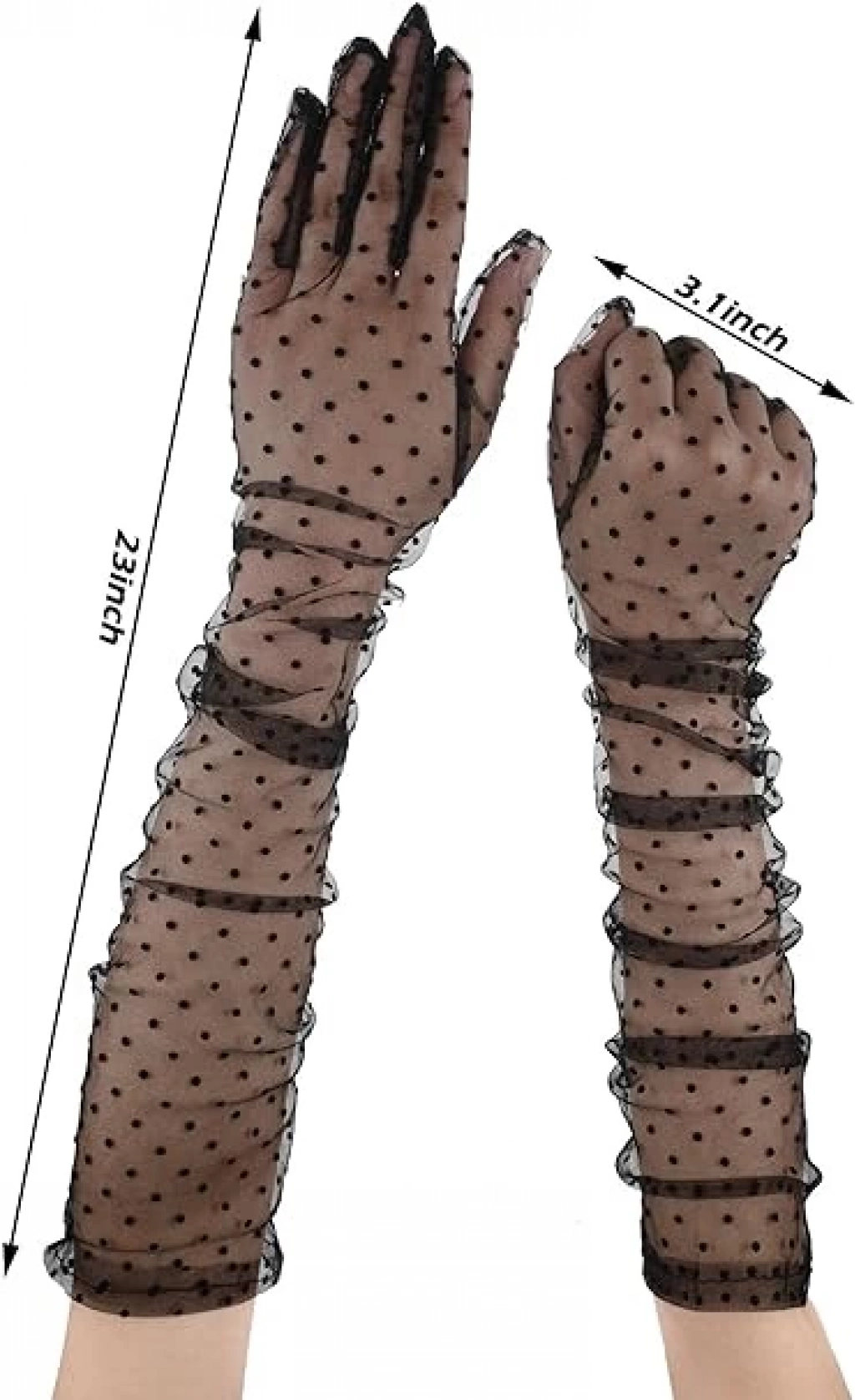 Uzun Siyah Puantiyeli Yetişkin Tül Eldiven