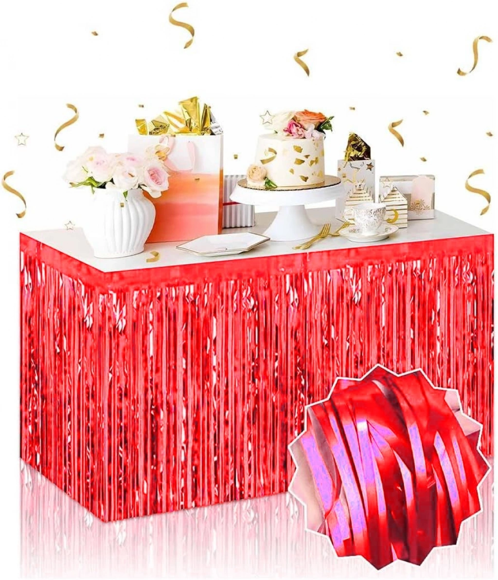 Kendinden Yapışkanlı Kırmızı Metalize Püsküllü Masa Eteği