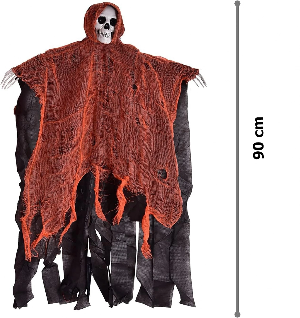LED IŞIKLI PELERİNLİ KURU KAFA DEKORÜrün ÖzellikleriLED Işıklı Pelerinli Kuru Kafa Dekor, özellikle Cadılar Bayramı, korku temalı parti ve vitrin süslemeleri için tasarlanmış dikkat çekici bir dekor ürünüdür. 90x50 cm ölçüsü sayesinde bulunduğu ortamda hemen fark edilir ve güçlü bir görsel etki oluşturur. Üzerinde yer alan LED ışık sistemi, kuru kafa figürünü aydınlatarak gece kullanımında bile ürünü ön plana çıkarır ve ortama etkileyici bir atmosfer kazandırır. Pelerinli kuru kafa tasarımı, dekorasyona mistik ve ürkütücü bir hava katar. Enerji verimli LED ışıklar pil ile çalışır ve uzun süreli kullanım imkânı sunar. Kaliteli malzeme yapısı sayesinde dayanıklı bir kullanım sağlar. Kurulumu son derece pratiktir, ekstra montaj gerektirmeden kolayca asılarak veya yerleştirilerek hemen kullanılabilir. Ev, ofis, mağaza vitrinleri ve etkinlik alanları için ideal bir tematik dekor çözümüdür.Ürün Teknik Özellikleri Özellik Açıklama Ürün Adı LED Işıklı Pelerinli Kuru Kafa Dekor Boyut 90 x 50 cm Aydınlatma LED ışıklı Çalışma Şekli Pil ile çalışır Tasarım Pelerinli kuru kafa figürü Kullanım Alanı Parti, vitrin, ev ve etkinlik dekorasyonu Paket İçeriği1 adet LED Işıklı Pelerinli Kuru Kafa Dekor