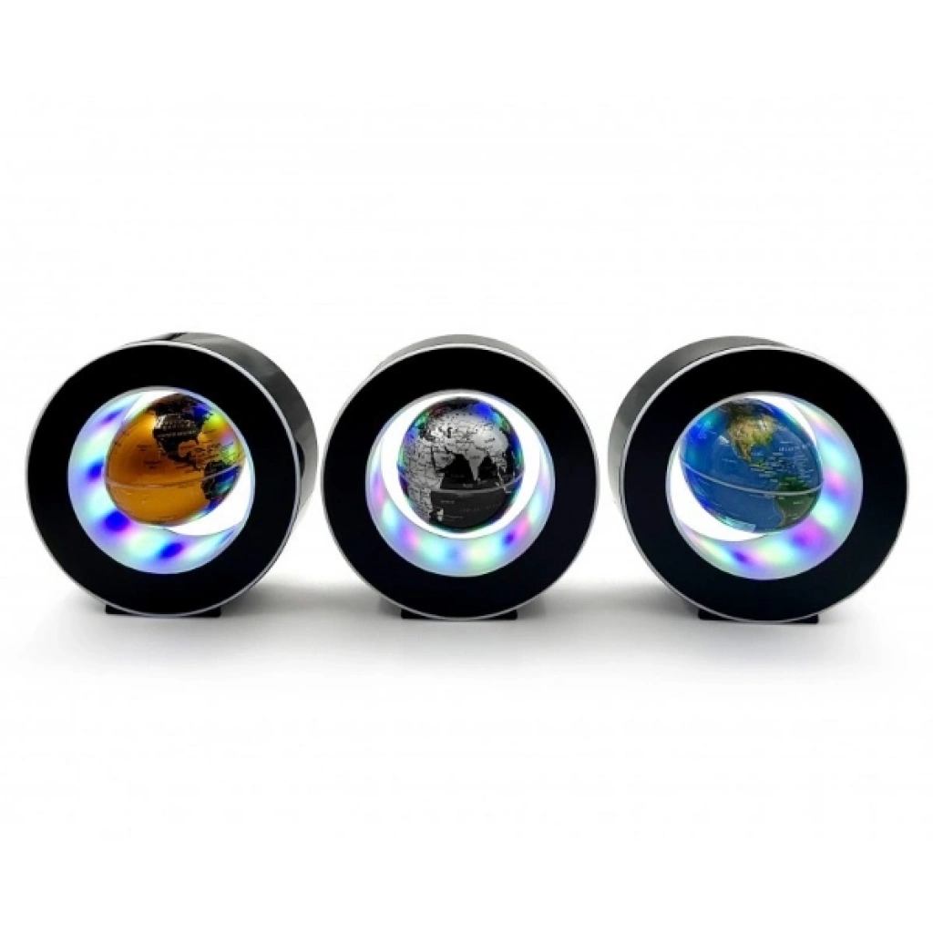 MANYETİK SİYAH MODEL YUVARLAK LEDLİ DÜNYA KÜREÜrün ÖzellikleriManyetik siyah model yuvarlak ledli dünya küre, modern tasarımıyla masaüstü dekorasyonlarda öne çıkar. 3 inç boyutundaki küre, manyetik sistem sayesinde siyah çerçeve içerisinde havada süzülür ve kendi etrafında dönerek etkileyici bir görsel sunar. Çerçevenin etrafında bulunan LED ışıklar sayesinde karanlık ortamlarda şık bir aydınlatma sağlar. Fiş ile çalışmaktadır ve uzun süreli kullanım için uygundur. Görselde yer alan farklı renk seçeneklerinden karışık olarak gönderilir. Ev, ofis veya hediye olarak tercih edilebilecek dekoratif bir üründür.Paket İçeriği1 adet Manyetik Siyah Model Yuvarlak Ledli Dünya Küre