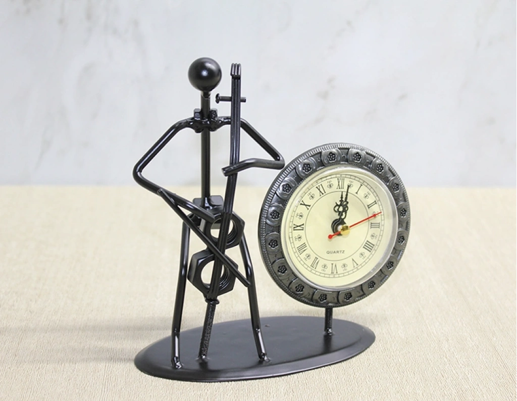 METAL SAATLİ KEMAN ÇALAN MÜZİSYENÜrün ÖzellikleriMetal saatli keman çalan müzisyen figürü dekoratif tasarımıyla dikkat çeken şık bir masa aksesuarıdır. 18x14 cm boyutunda olan ürün, hem masa saati hem de sanatsal obje olarak kullanılabilir. Siyah metal malzemeden üretilmiş olan bu figür, keman çalan müzisyen görünümüyle ortama estetik bir hava katar. Zarif işçiliği ve kullanışlı yapısıyla ofis, salon veya çalışma alanlarında dekoratif bir detay olarak tercih edilebilir.Paket İçeriği1 adet Metal Saatli Keman Çalan Müzisyen