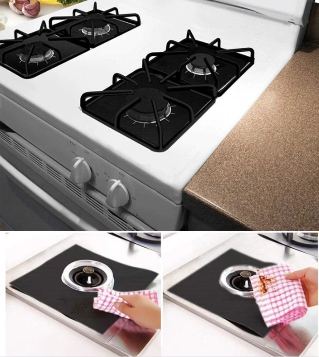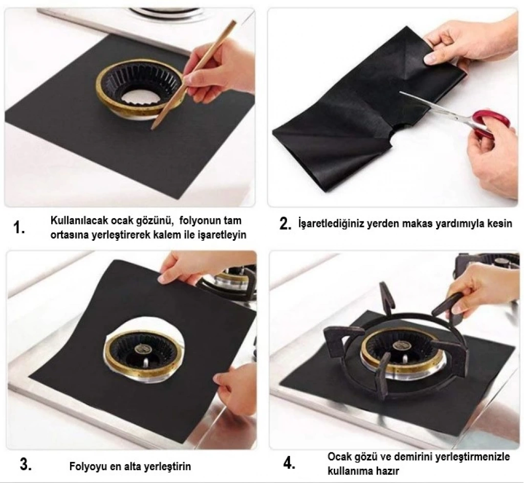 Siyah Renk Ocak Koruyucu Folyo Yanmaz Yapışmaz 4'lü Set