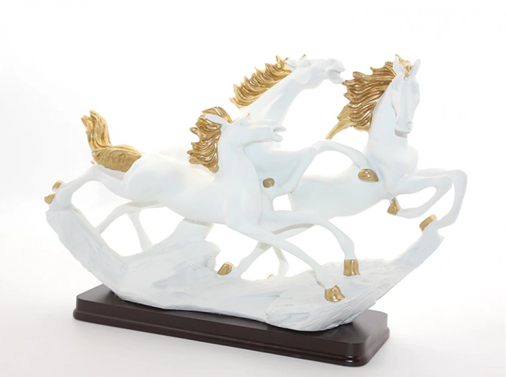 POLYESTER 3'LÜ ŞAHLANMIŞ AT FİGÜRÜÜrün ÖzellikleriPolyester 3’lü şahlanmış at figürü, zarif ve güçlü tasarımıyla dekorasyonunuza şıklık katar. Figürler dayanıklı polyester malzemeden üretilmiş olup, detaylı işçiliği sayesinde gerçekçi bir görünüm sunar. Taban kısmı doğal ahşaptan yapılmış olup, figürün sağlam ve dengeli durmasını sağlar. Estetik ve sanatsal yapısıyla ev, ofis veya vitrin dekorasyonu için mükemmel bir seçimdir. Zarif duruşlarıyla hareketin ve özgürlüğün sembolü olan bu figürler, klasik ve modern dekorasyon stilleriyle uyum sağlar.Paket İçeriği1 adet Polyester 3'lü Şahlanmış At Figürü