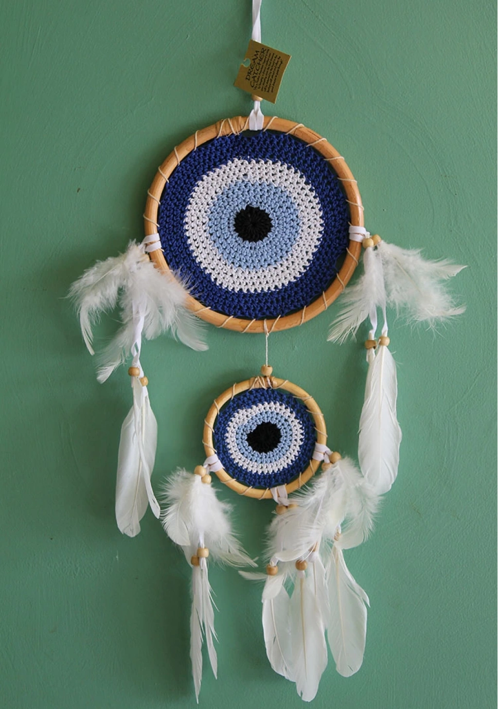 RÜYA KAPANI DREAM CATCHER MODEL 12Ürün ÖzellikleriRüya Kapanı Dream Catcher Model 12, iplerle işlenmiş nazar boncuğu ve beyaz tüylerle zarif bir şekilde tasarlanmış estetik bir üründür. Nazar boncuğu, geleneksel olarak kötü enerjilerden korunmayı simgelerken, beyaz tüyler ve ip detayları tasarıma huzur verici bir dokunuş ekler. Hem geleneksel hem de modern dekorasyon için mükemmel bir seçenek olan bu dream catcher, hem koruyucu hem de dekoratif bir işlev taşır. Hafif yapısı sayesinde kolayca her alanda kolayca asılabilir ve odanıza estetik bir hava katacaktır.Paket İçeriği1 adet Rüya Kapanı Dream Catcher Model 12.