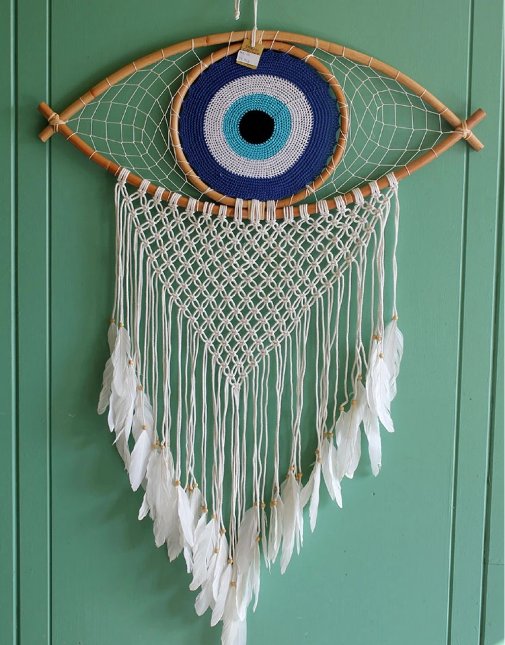 RÜYA KAPANI DREAM CATCHER MODEL 13Ürün ÖzellikleriRüya Kapanı Dream Catcher Model 13, iplerle işlenmiş nazar boncuğu, ip işlemeli tasarım ve beyaz tüylerle zarif bir şekilde tasarlanmış estetik bir üründür. Nazar boncuğu, kötü enerjilerden korunmayı simgelerken, ip işlemeli detaylar tasarıma zarif bir dokunuş ekler. Beyaz tüyler ise huzur verici bir atmosfer yaratır. Hem geleneksel hem de modern dekorasyon için mükemmel bir seçenek olan bu dream catcher, koruyucu ve dekoratif işlevleriyle dikkat çeker. Hafif yapısı sayesinde her alanda kolayca asılabilir ve evinize estetik bir dokunuş katar.Paket İçeriği1 adet Rüya Kapanı Dream Catcher Model 13.