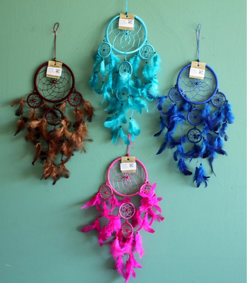RÜYA KAPANI DREAM CATCHER MODEL 23Ürün ÖzellikleriRüya Kapanı Dream Catcher Model 23, kahverengi, pembe, lacivert ve mavi renklerdeki farklı renk tasarımları, renkli tüyler ve boncuklar ile estetik bir şekilde tasarlanmış enerjik bir üründür. Renkli tüyler tasarıma canlılık ve hareket katarken, boncuklar zarif detaylar ekler. Bu dream catcher, koruyucu işlevi ve dekoratif tasarımı ile her alanda şıklık sağlar. Hafif yapısı sayesinde kolayca asılabilir ve her mekana canlılık ve renk katar. Hem geleneksel hem de modern dekorasyon için mükemmel bir seçimdir.Not: Ürün farklı renklerde mevcuttur ve var olan renk gönderilmektedir.Paket İçeriği1 adet Rüya Kapanı Dream Catcher Model 23.