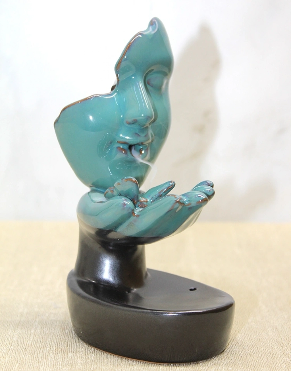 SERAMİK MASK TASARIMLI GERİ AKIŞ TÜTSÜLÜKÜrün ÖzellikleriSeramik Mask Tasarımlı Geri Akış Tütsülük, mistik mask formu ve modern hatlarıyla hem dekoratif hem de aromaterapi amaçlı kullanılabilen etkileyici bir tasarımdır. 10x7 cm boyutundaki kompakt yapısı sayesinde çalışma masasında, meditasyon köşelerinde, oturma odalarında veya hediye amaçlı kullanımda ideal bir tercih sunar. Seramik malzeme kullanılarak üretilen bu tütsülük, yüksek ısıya dayanıklı yapısıyla geri akış konik tütsülerin güvenli bir şekilde kullanılmasını sağlar. Geri akış özelliği sayesinde tütsü dumanı maskenin içinden aşağı doğru süzülerek görsel olarak sakinleştirici ve estetik bir şelale etkisi oluşturur. Ortama dinginlik katan duman akışı, hem ruhsal rahatlama hem de dekoratif zenginlik sunar.Paket İçeriği1 adet Seramik Mask Tasarımlı Geri Akış Tütsülük