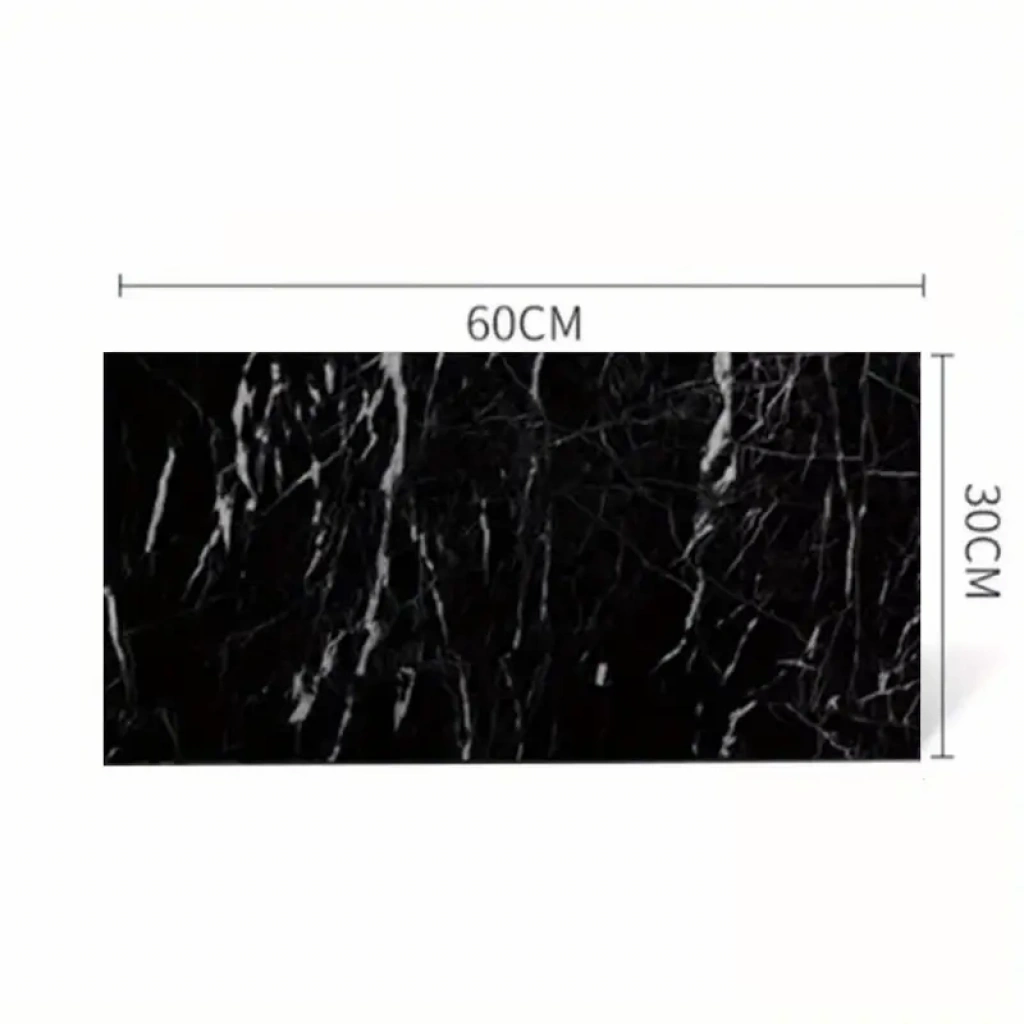 SİYAH MERMER DESENLİ ALÜMİNYUM PLASTİK DUVAR STICKERI"Şıklığı ve Koruma Bir Arada: Duvarlarınızı Mermer Deseniyle Yenileyin!"Bu siyah mermer desenli alüminyum plastik duvar stickerı, hem estetik hem de koruyucu özellikleri bir arada sunar. Ürün özellikleri arasında nem, su, toz ve yağ geçirmezlik, kolay temizlenebilirlik ve yüksek sıcaklığa dayanıklılık bulunmaktadır. Ürün, mutfak tezgah üstleri, çekmeceler, dolaplar, boyalı duvarlar, pürüzsüz duvar kağıtları, pürüzsüz ahşap yüzeyler, metal ve cam yüzeyler ile plastik yüzeylerde rahatlıkla kullanılabilir.“Tarzınızı Yansıtan Pratik Çözümler!"Kendinden yapışkanlı ve çıkarılabilir arka etiketi, kolay ölçüm ve yerleştirme için uygun ızgara çizgileri sunar. Bu özellik, stickerı banyolarda, mutfaklarda, dolaplarda, çamaşır odalarında, okul projelerinde, atölyelerde ve ofislerde kullanımı ideal hale getirir. Kolay yapıştırma özelliği sayesinde uzun ömürlü kullanım sağlar.Ürün Ölçüleri: 60cm x 30cm boyutlarıyla farklı alanlarda kullanım için uygundur ve dekoratif bir dokunuş katarak mekanlarınızı yenilemenin pratik bir yolunu sunar.