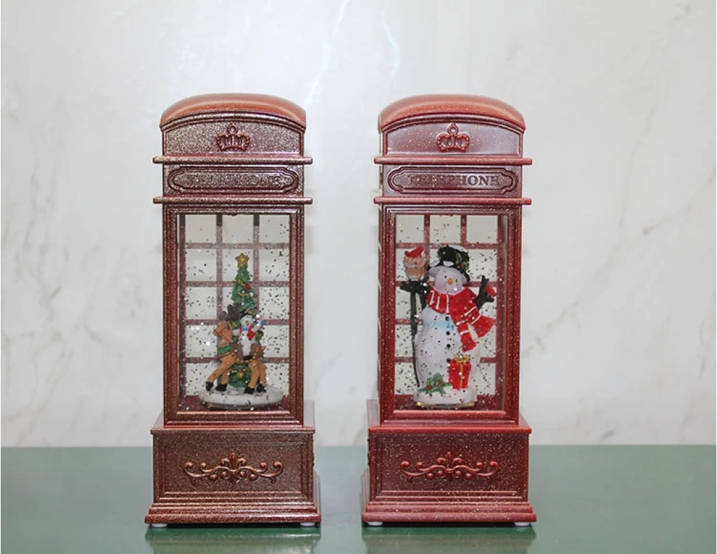 Telefon Kulübesi Tasarımlı Yılbaşı Temalı Işıklı Müzikli Kar Küresi Model 2