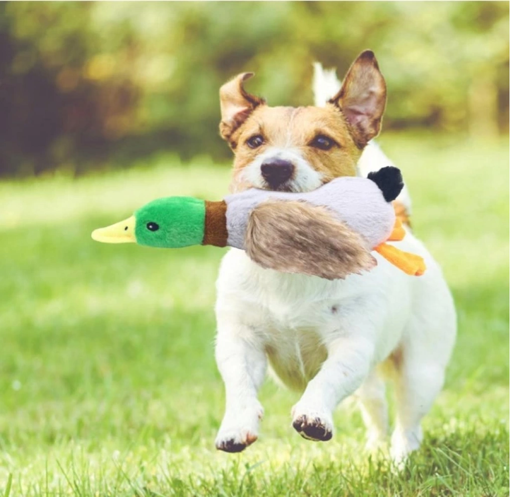 Sesli Ördek Şekilli Peluş Köpek OyuncağıÜrün Açıklaması:Köpeğinizin avcılık içgüdülerini harekete geçirecek sesli ördek peluş oyuncak! Dayanıklı ve yumuşak malzemesi ile uzun süre kullanım sağlar. Peluş yapısı sayesinde köpeğinizin diş ve diş etlerine zarar vermez. İçerisindeki ses mekanizması ile köpeğinizi eğlendiren bu oyuncak, köpeğinizin oyun oynarken keyifli vakit geçirmesine yardımcı olur.Sesli Oyuncak: İçerisindeki ses mekanizması ile köpeğinizin dikkatini çeker ve eğlenceli vakit geçirmesini sağlar.Dayanıklı Peluş Malzeme: Yumuşak ve dayanıklı yapısıyla uzun süreli kullanıma uygundur.Köpekler İçin Güvenli: Peluş yapısı köpeğinizin diş ve diş etlerine zarar vermez.Avcılık İçgüdüsünü Destekler: Ördek şekli, köpeğinizin doğasındaki avlanma içgüdüsünü harekete geçirir.