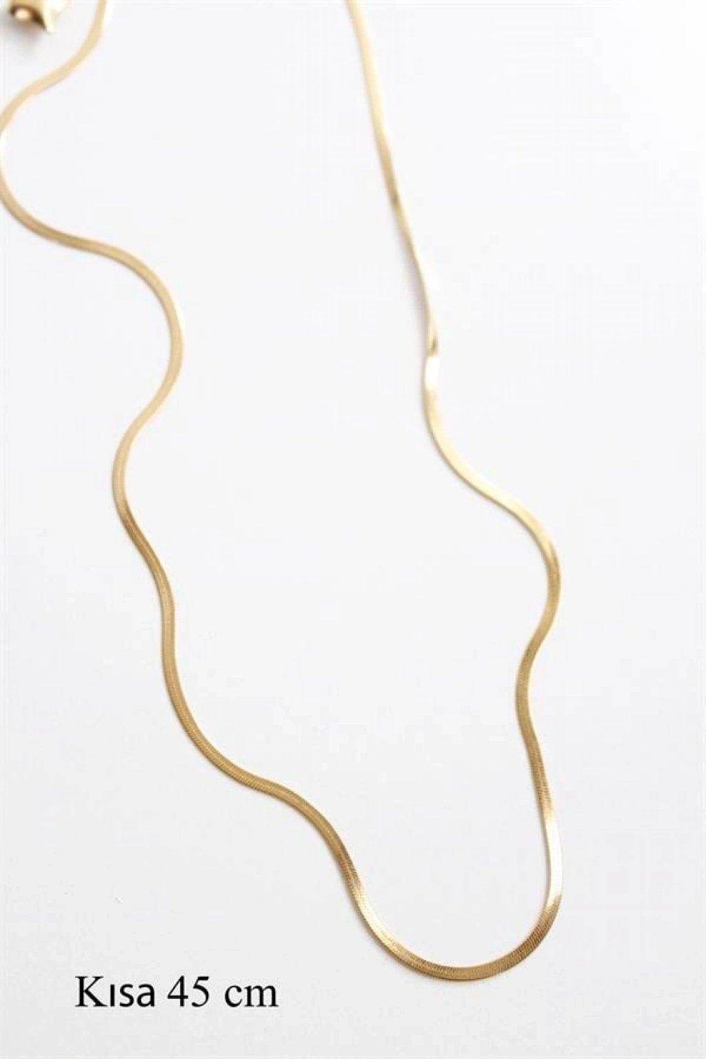 İnce İtalyan Zincir Çelik Kolye (45cm) - Altın