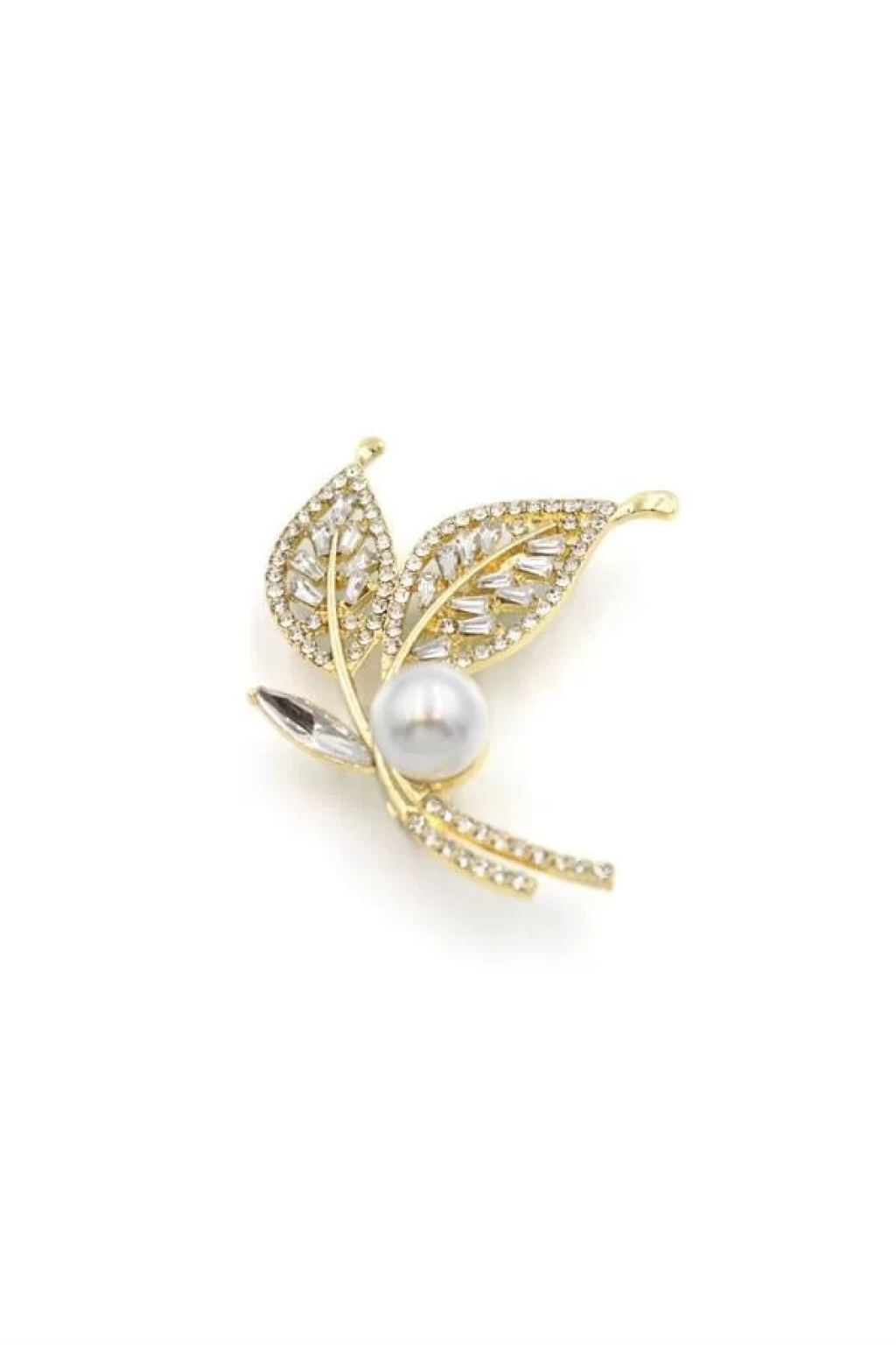 İncili Yaprak Broş - Altın