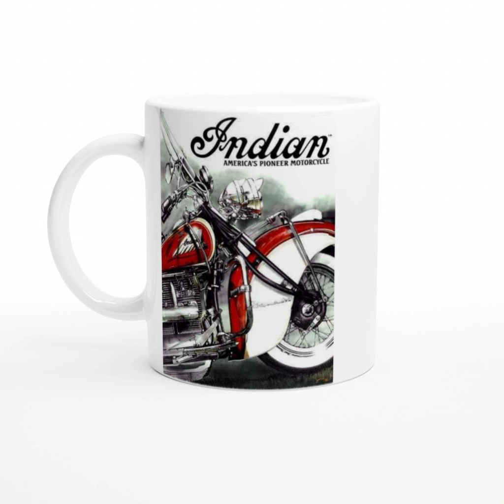 Kırmızı beyaz renkleri ve detaylı çizimiyle öne çıkan bu Indian motosiklet baskılı kupa bardak, koleksiyon değeri taşır.