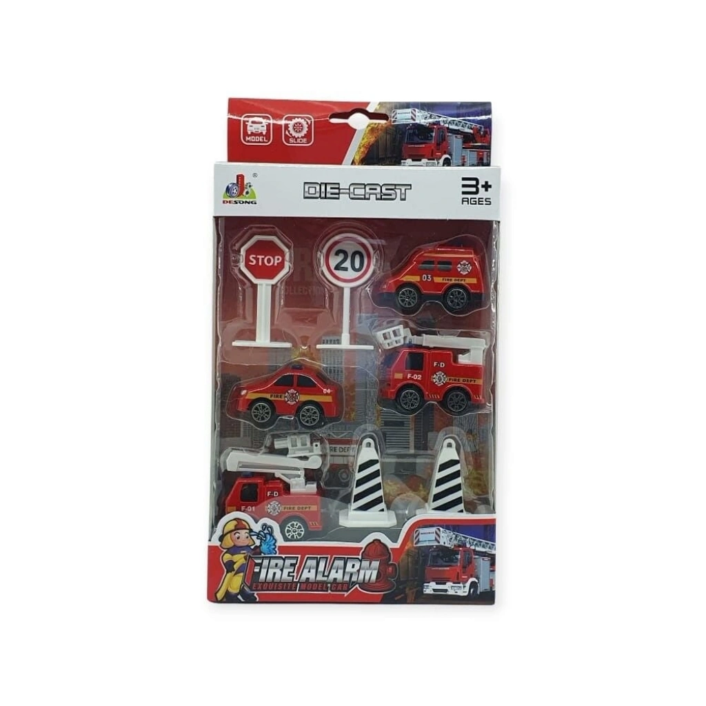 İş Makinaları 8 Parça Araç Seti - İtfaiye Seti