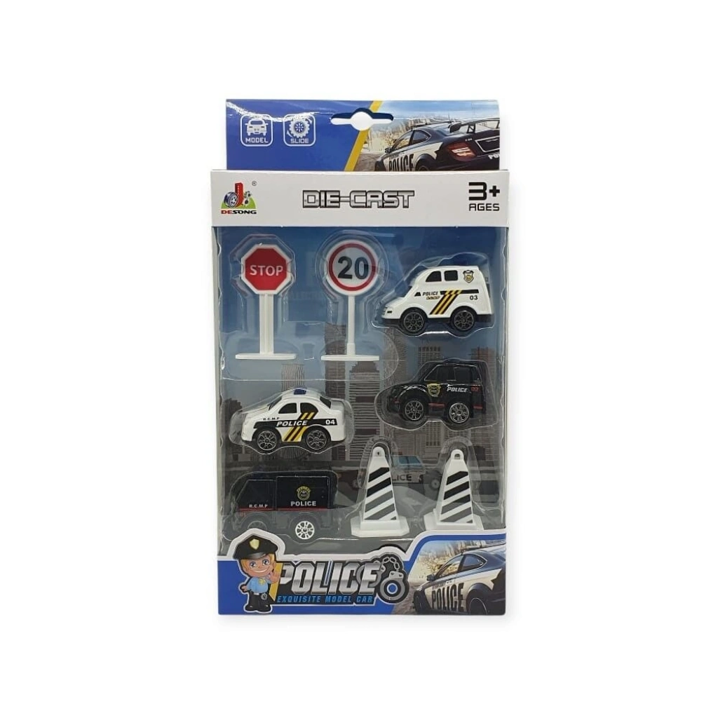 İş Makinaları 8 Parça Araç Seti - Polis Seti