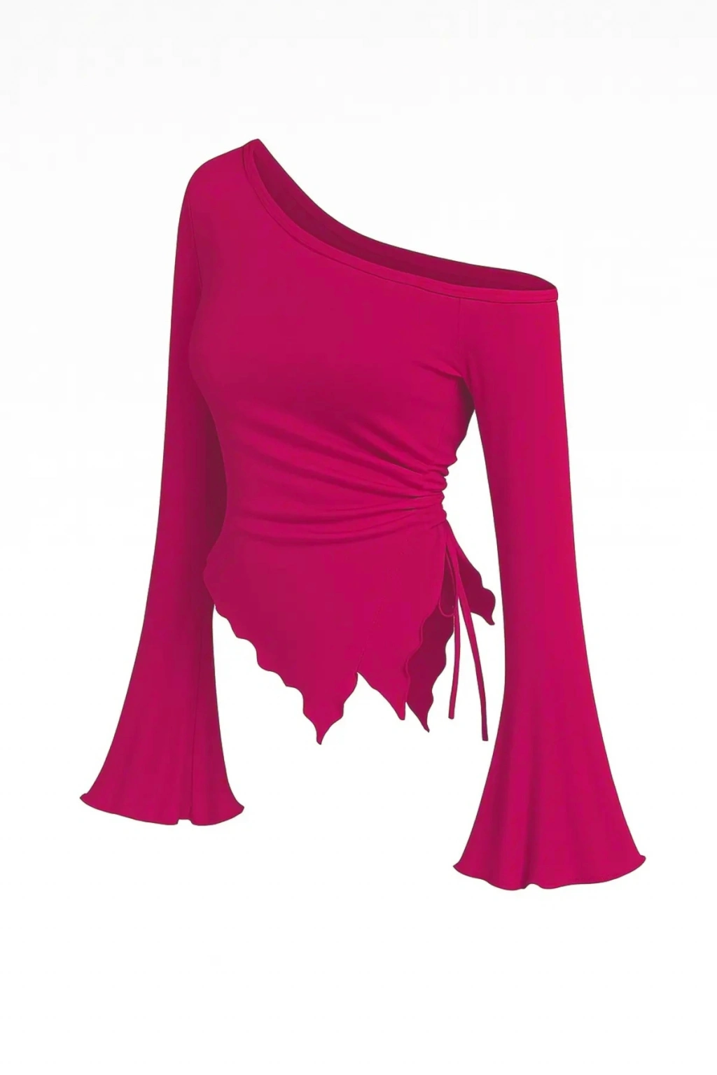 • İddialı ama zarif bir görünüm isteyenler için Kadın Fuşya Asimetrik Yaka Drapeli Yan Bağlamalı Bluz, gardırobun en enerjik parçalarından biri olacak.