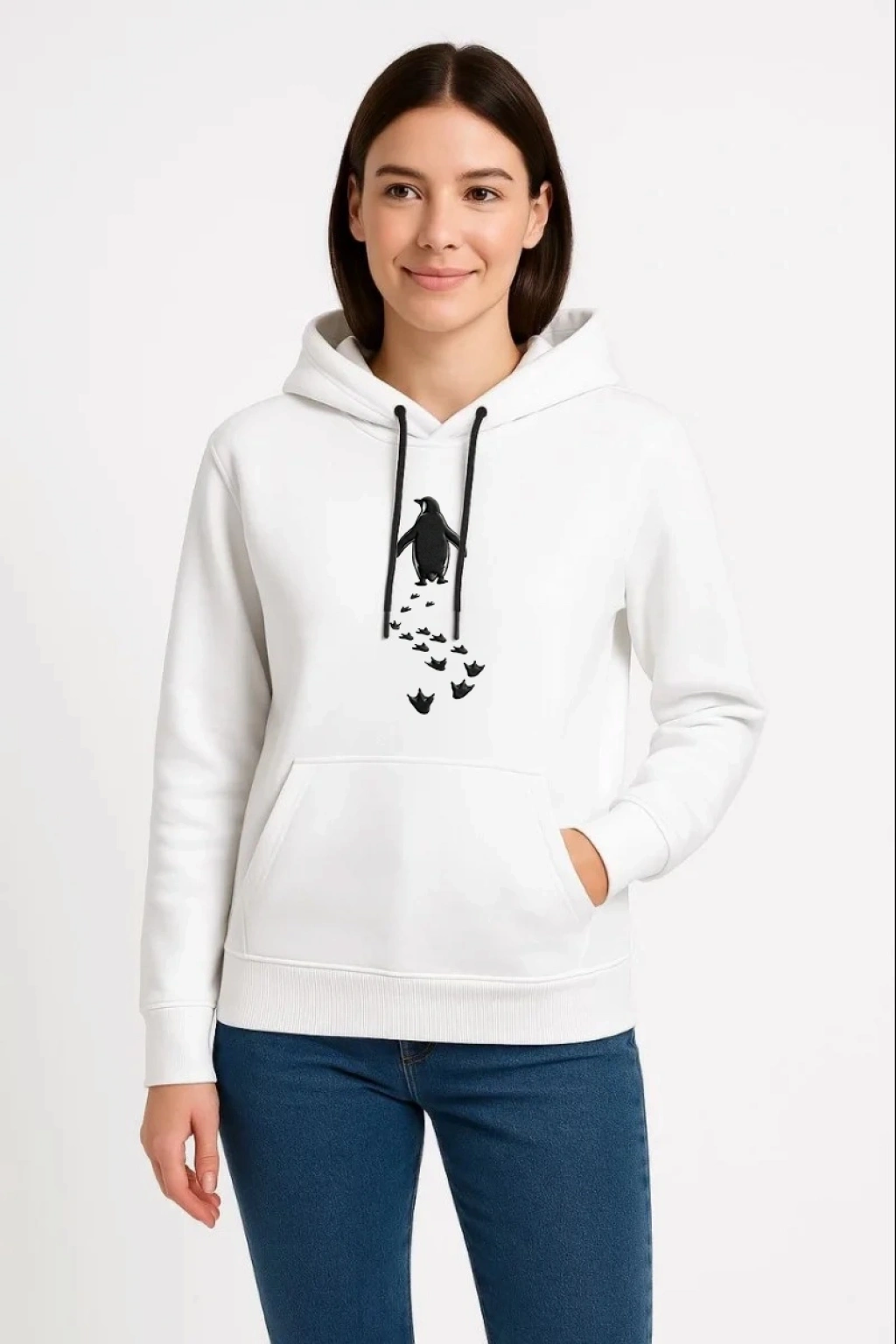 Kadın Nihilist Penguen Temalı Oversize Kapüşonlu Sweatshirt - Beyaz