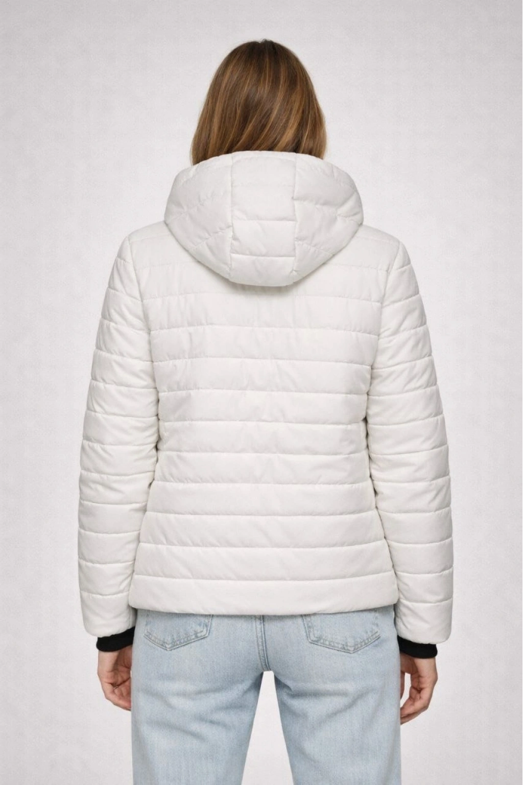 Kadın Şişme Kapüşonlu Fermuarlı Mont Su itici Kapitone Astarlı Kumaş Cepli Kışlık Rahat Kalıp - Krem