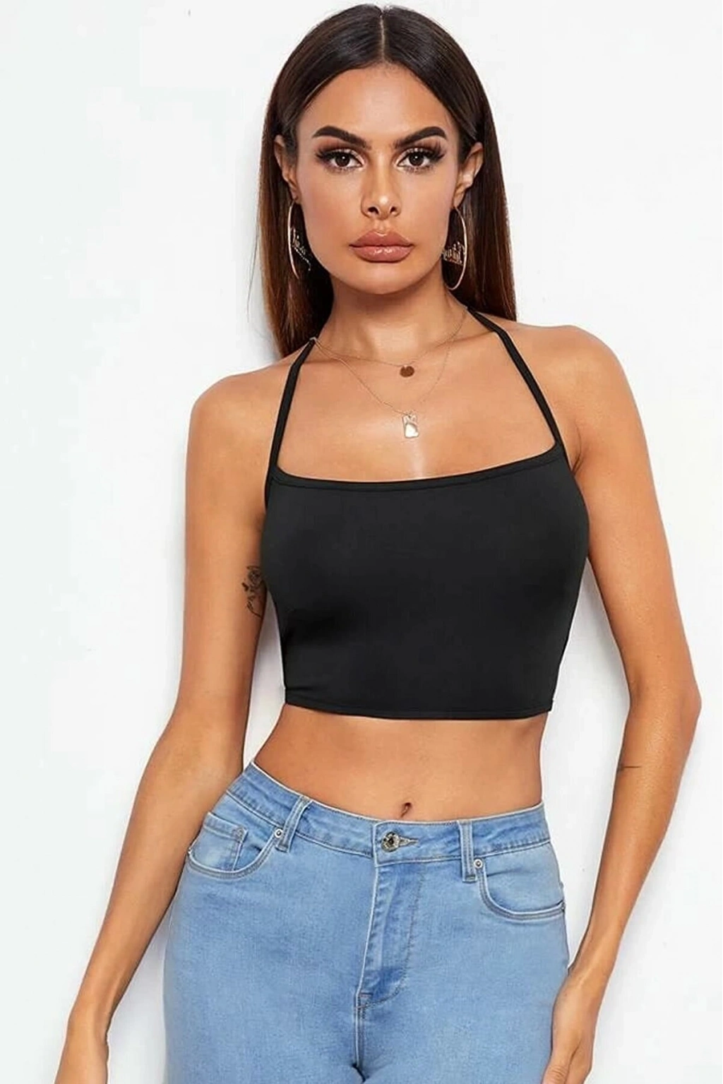 Kadın Siyah Belden Bağlamalı Şık Büstiyer – Modern ve Şık Tasarım