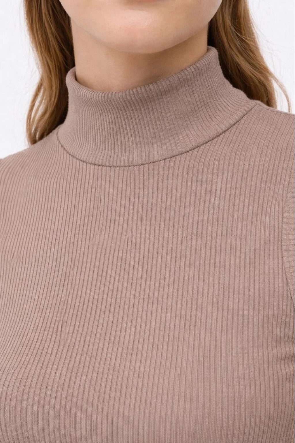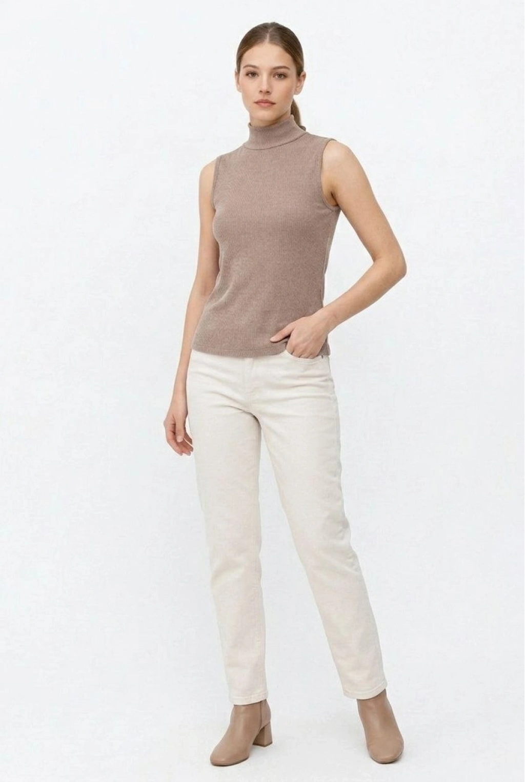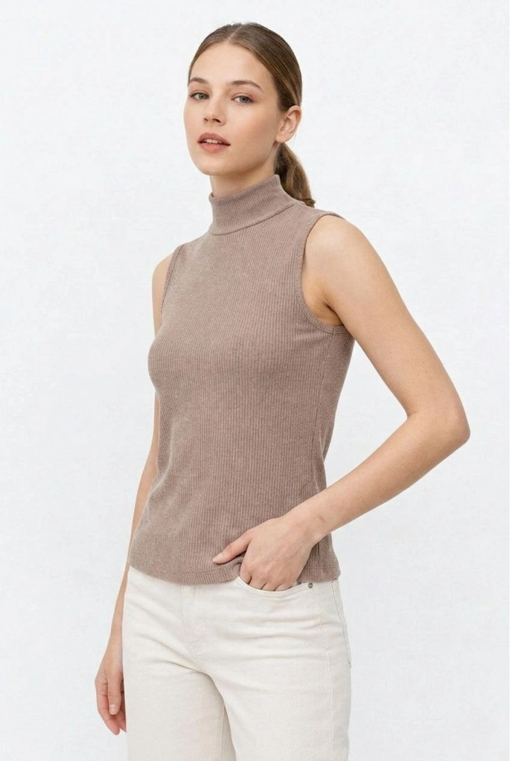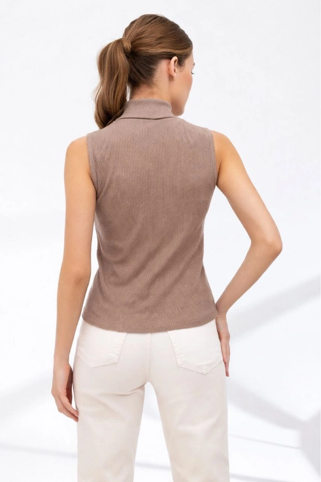 Kadın Yarım Balıkçı Yaka Fitilli Kaşkorse Atlet Basic Şık Bluz Badi - Bej