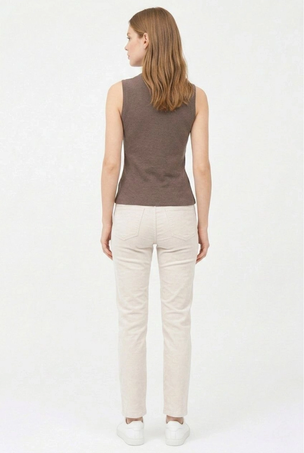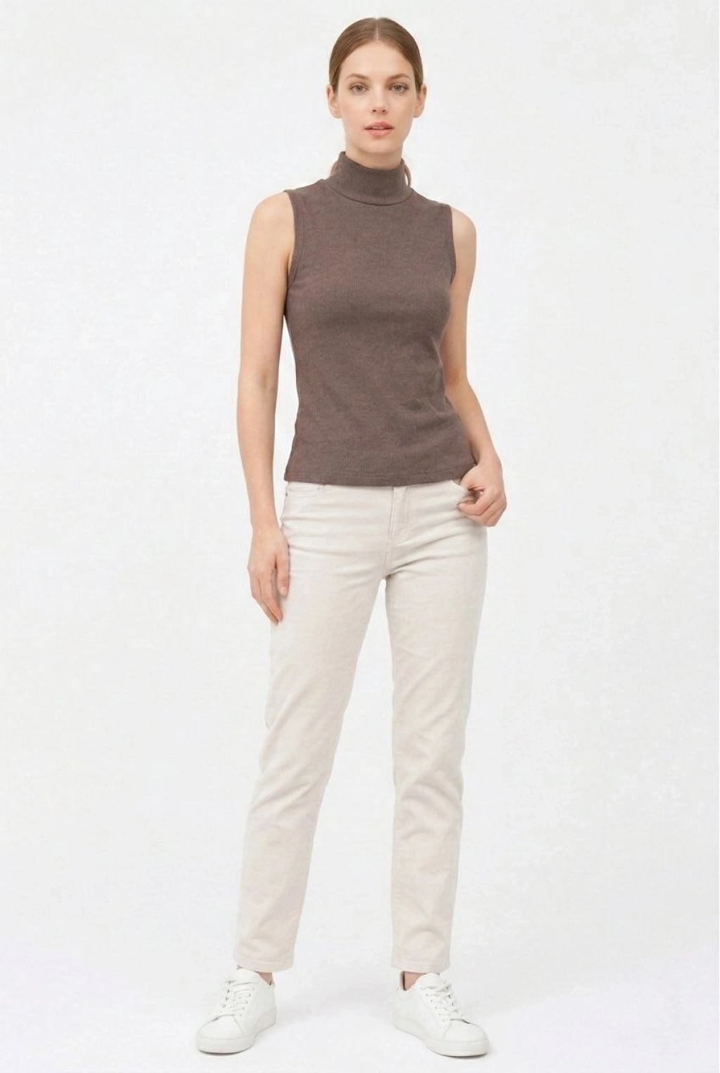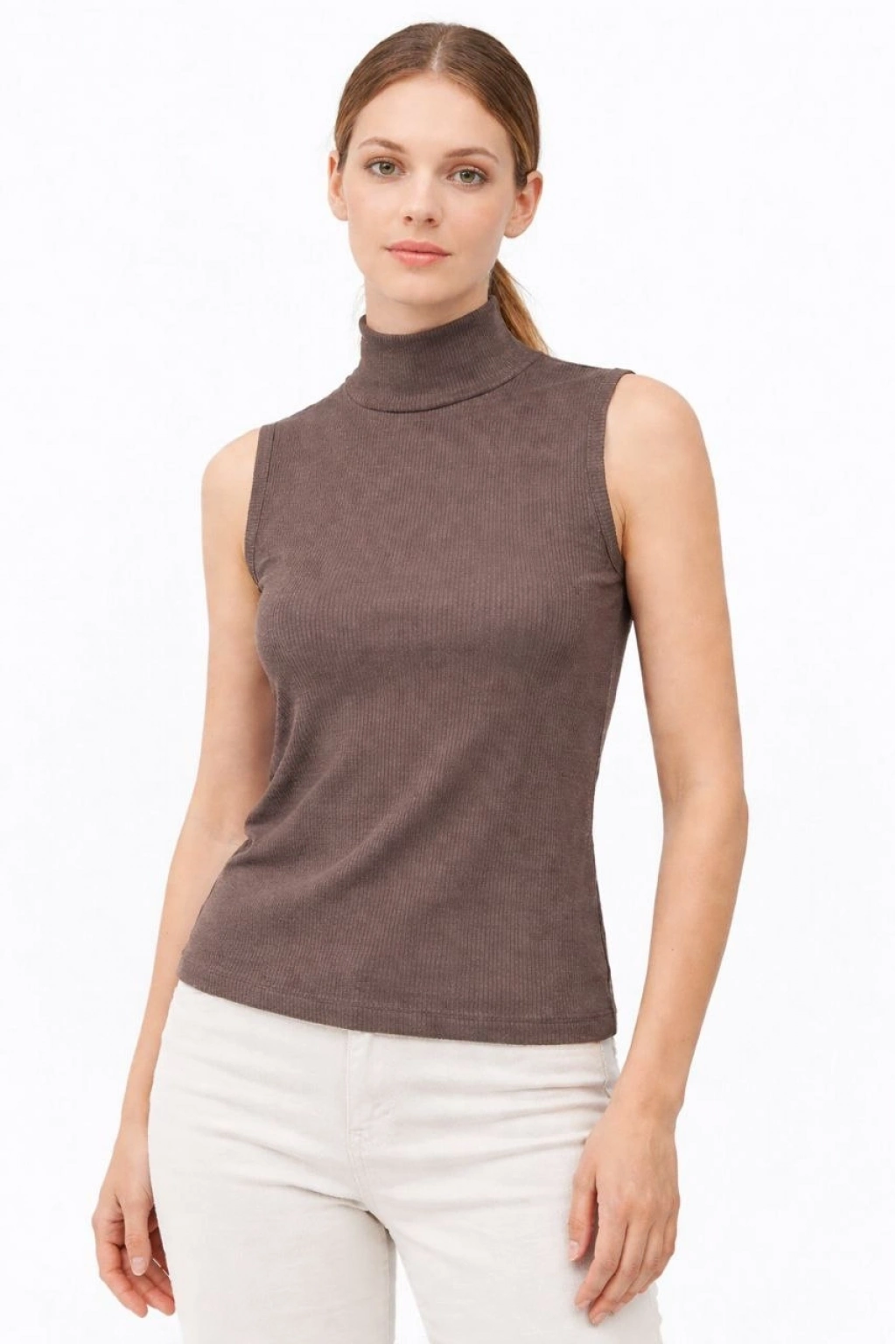 Kadın Yarım Balıkçı Yaka Fitilli Kaşkorse Atlet Basic Şık Bluz Badi - Kahverengi