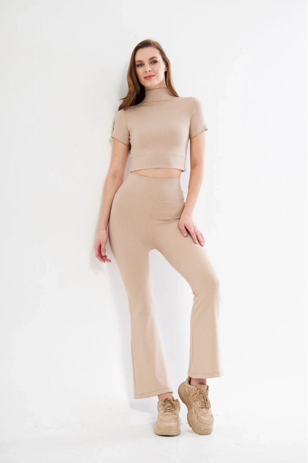 Kadın Yüksel Bel Fitilli İspanyol Paça Tayt - Bordo
