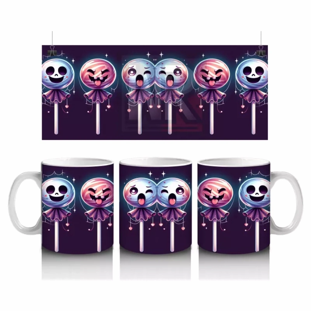 Kafatası Şeker Figürlü Lolipoplarla Renkli Cadılar Bayramı Baskılı Kupa Bardak